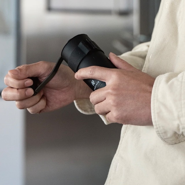 粒度の均一性、切れ味、挽き心地に優れたステンレス刃を採用。 雑味の少ないスッキリした後味のコーヒーを愉しむことができます。 ハンドルは本体のバンドに収納でき、持ち運びに便利なフタも付属しています。 アウトドアのコーヒー体験をより上質にするコーヒーミルです。 約20gのコーヒー豆を挽くことが可能です。 <商品サイズ> ハンドル収納時:W91×D55×H152mm 組立時:W140×D55×H165mm