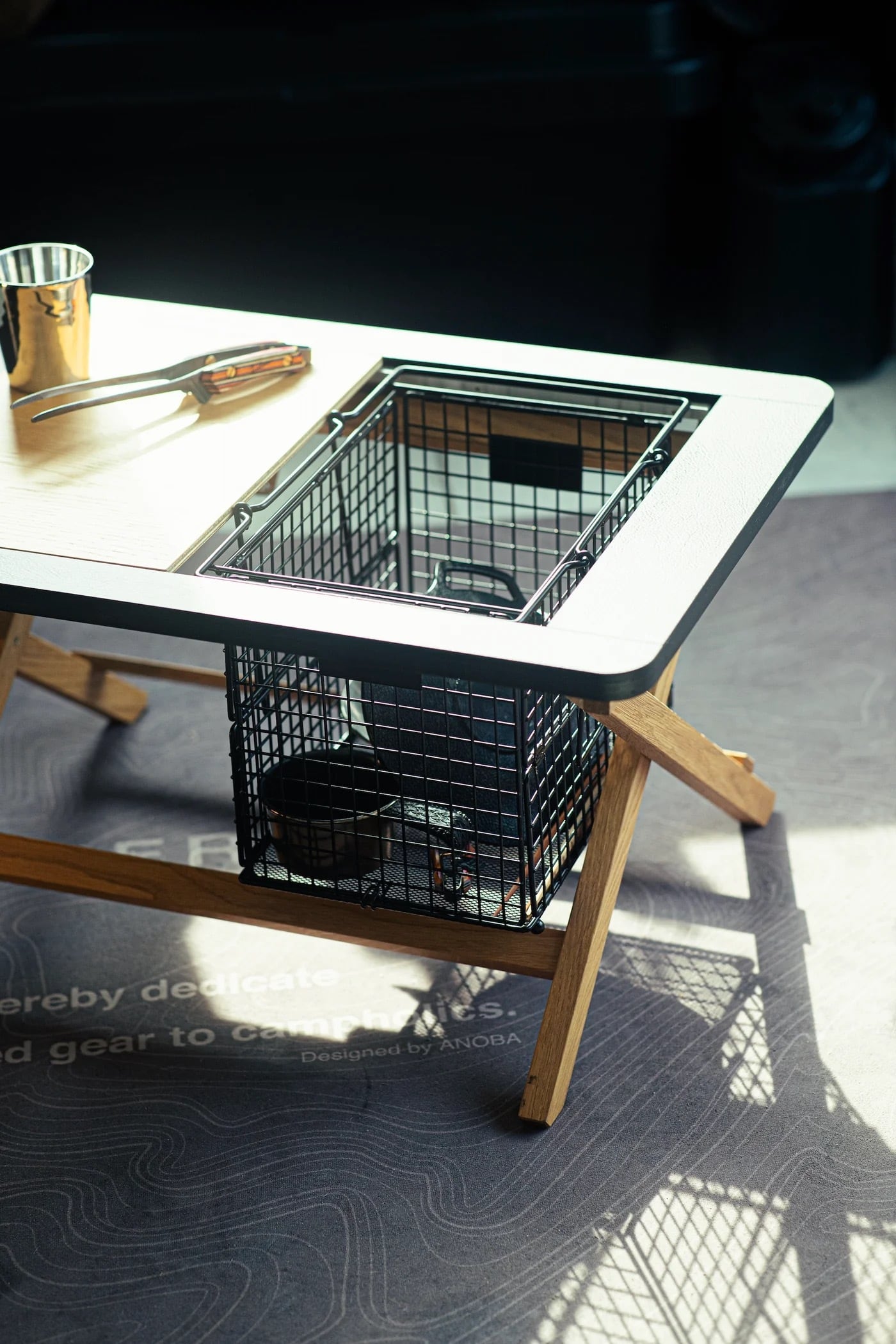 ワンユニットバーナーテーブルにも対応し、吊り下げて使用することも可能。