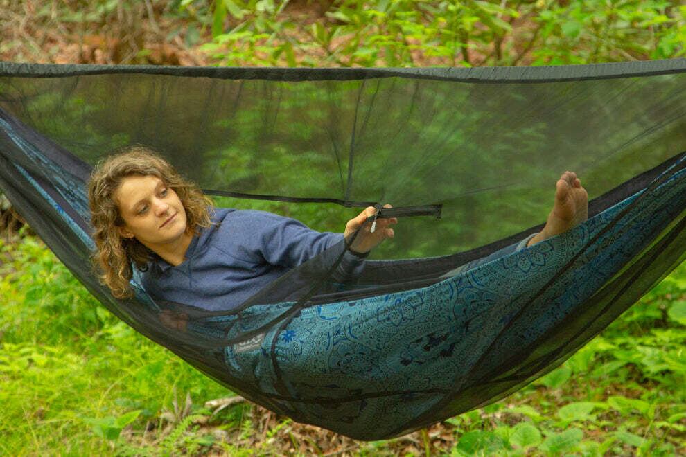 本体重量が255gと軽量で、居住性よりも持ち運びのコンパクトさを求める方向けのENOハンモック専用の蚊帳です。