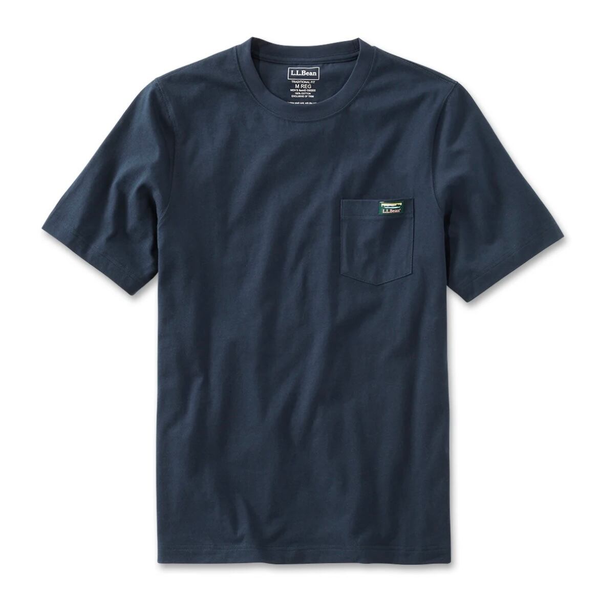 LLbean メンズ ジャパン・フィット ケアフリー・アンシュリンカブル・ティ、半袖 ポケット付き カタディン・ロゴ