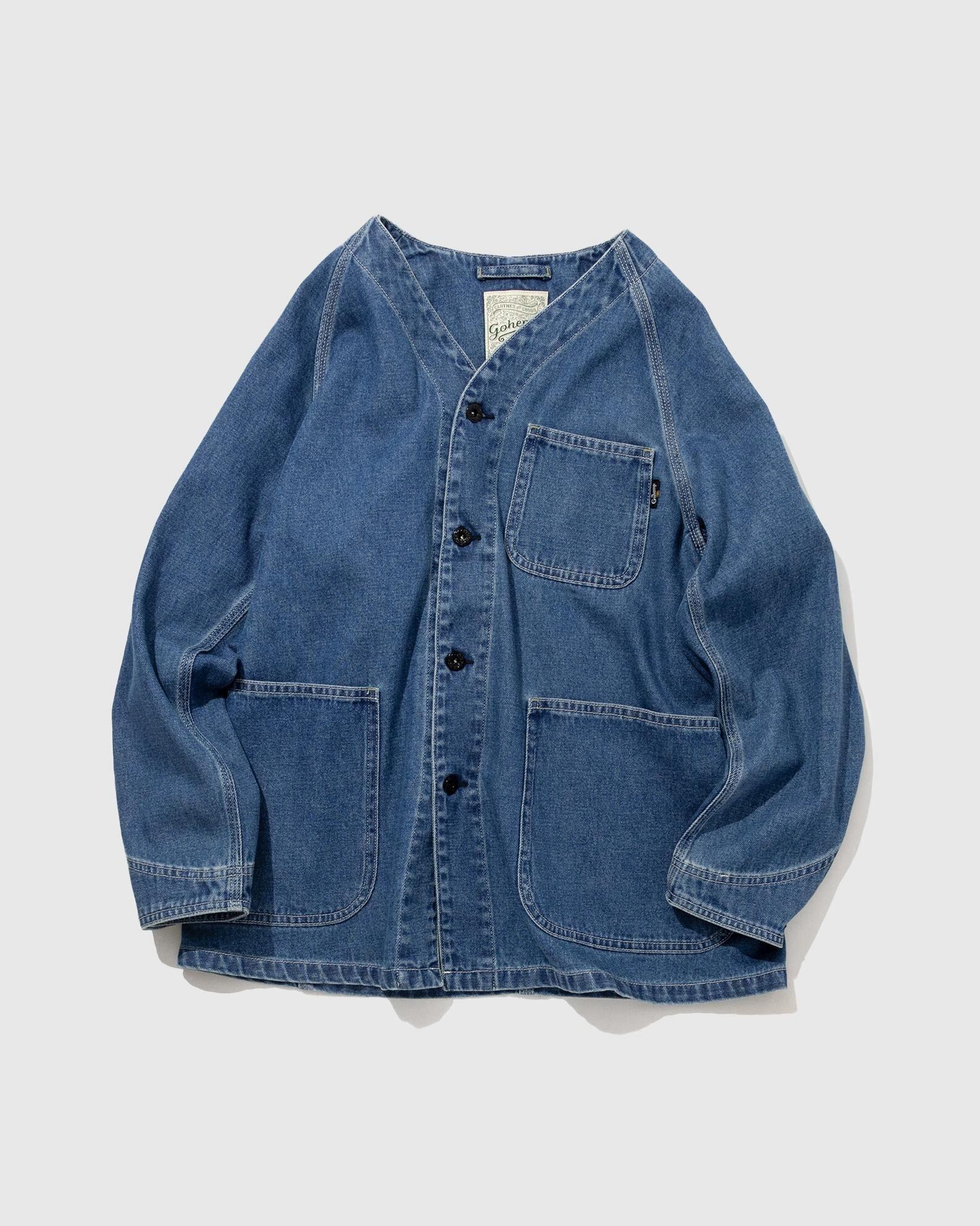ゴーヘンプが得意とするヴィンテージディテールやトラディショナルな縫製はしっかり押さえつつ、ノーカラーを採用することでハードな印象を緩和しています。