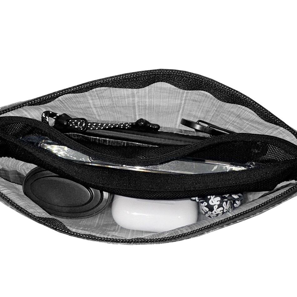 高強度かつ超軽量なDyneema®素材を採用した、わずか23gの多用途ポーチ(約1L)。止水ジッパーとストレッチメッシュ仕切りで機能性を高め、ジッパー両端のループが開閉をスムーズにサポート。