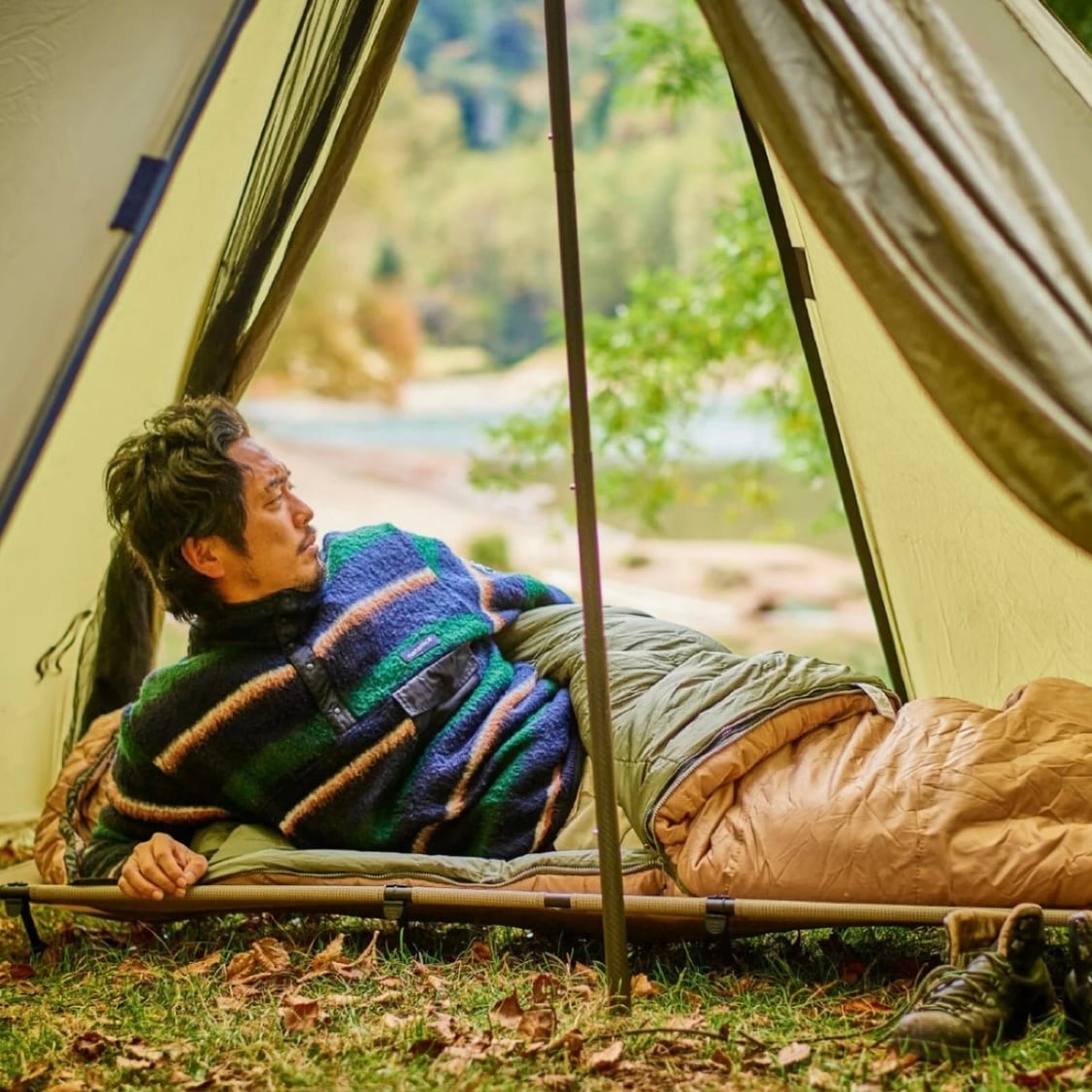 ●上部からの冷気を防ぐドローコード付きのフード、首からの冷気侵入を防ぐショルダーウォーマー、ファスナーからの冷気侵入を防ぐドラフトチューブ、寒い夜を快適にすごすため細かいところまでこだわり作り込まれています。