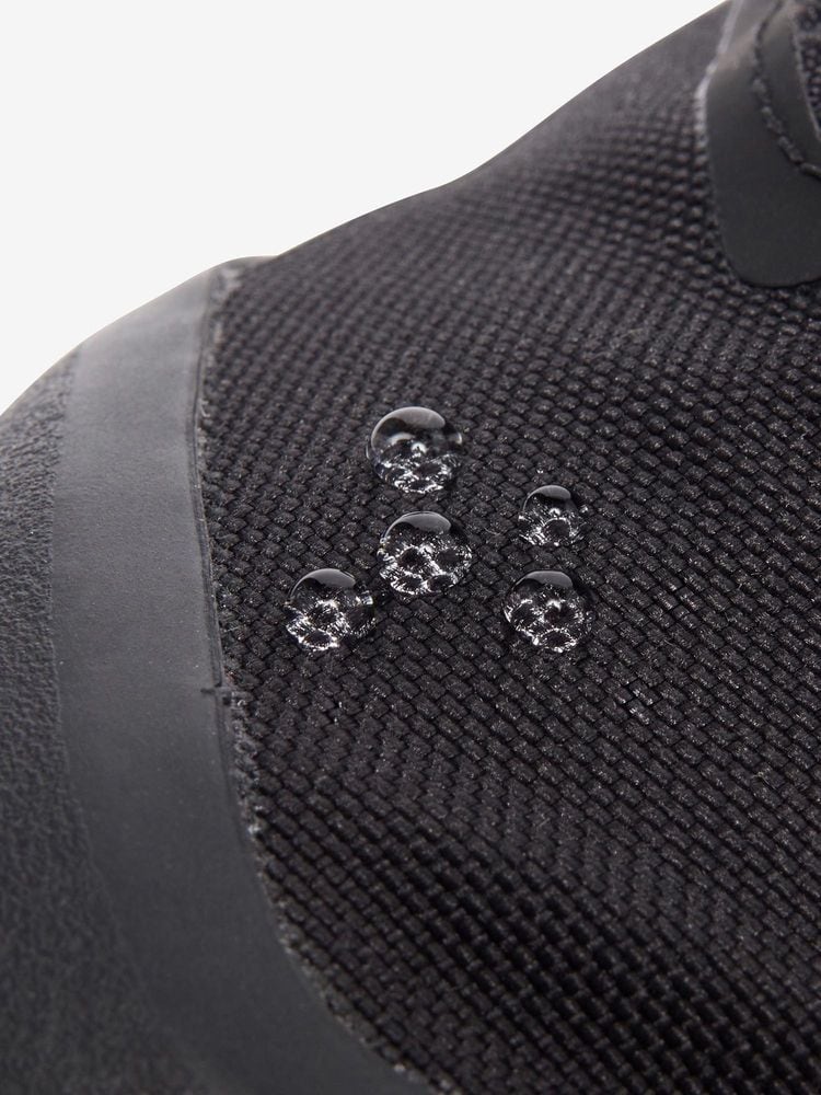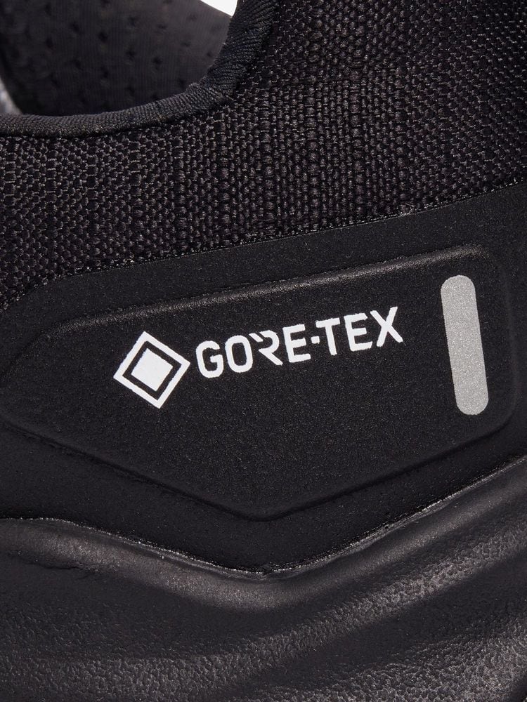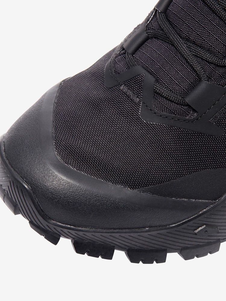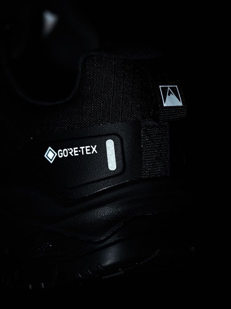 前足部のアッパー素材に、高い耐久性を誇る「CORDURAリップストップナイロン」を採用。さらに、前足部の両側のラバーを巻き上げたラバーラップ構造で、耐久性と安定感を高めています。岩場などでつま先を保護するため、ラバートゥキャップを装備。防水透湿素材に「GORE-TEX」を使用して、雨天やぬかるみでも快適に行動できます。