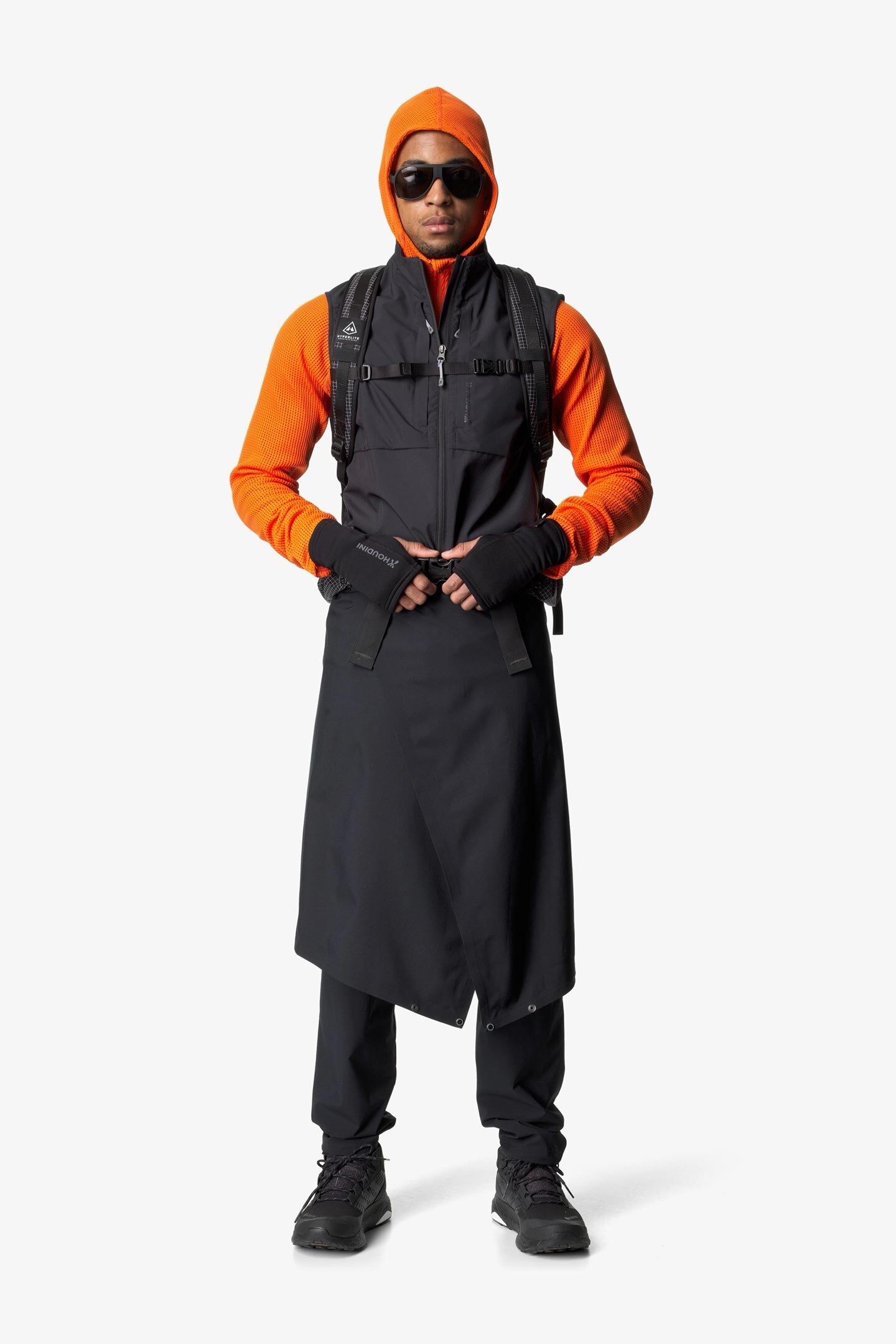 生地は防水性と防風性に優れる3レイヤーのLoop Hardshell™で、2Way ストレッチの伸縮性と高い透湿性を備えています。ラップアラウンド構造のスカートとしてデザインされており、パンツの上から巻いて着用することで着脱も容易に、雨から身体を守ります。