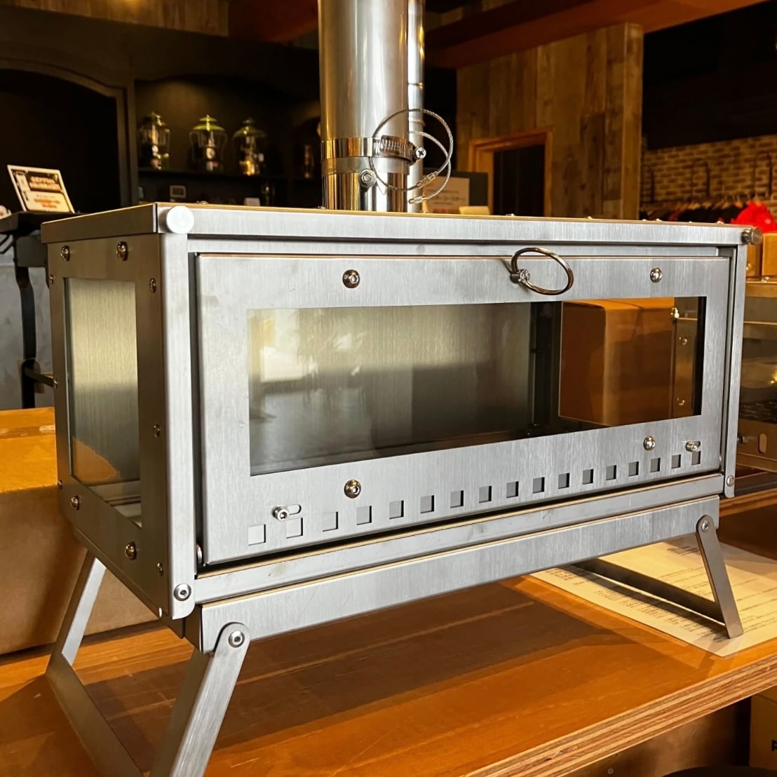 三面ガラス仕様の贅沢なデザイン。アウトドアでの使用に最適な高性能薪ストーブです。