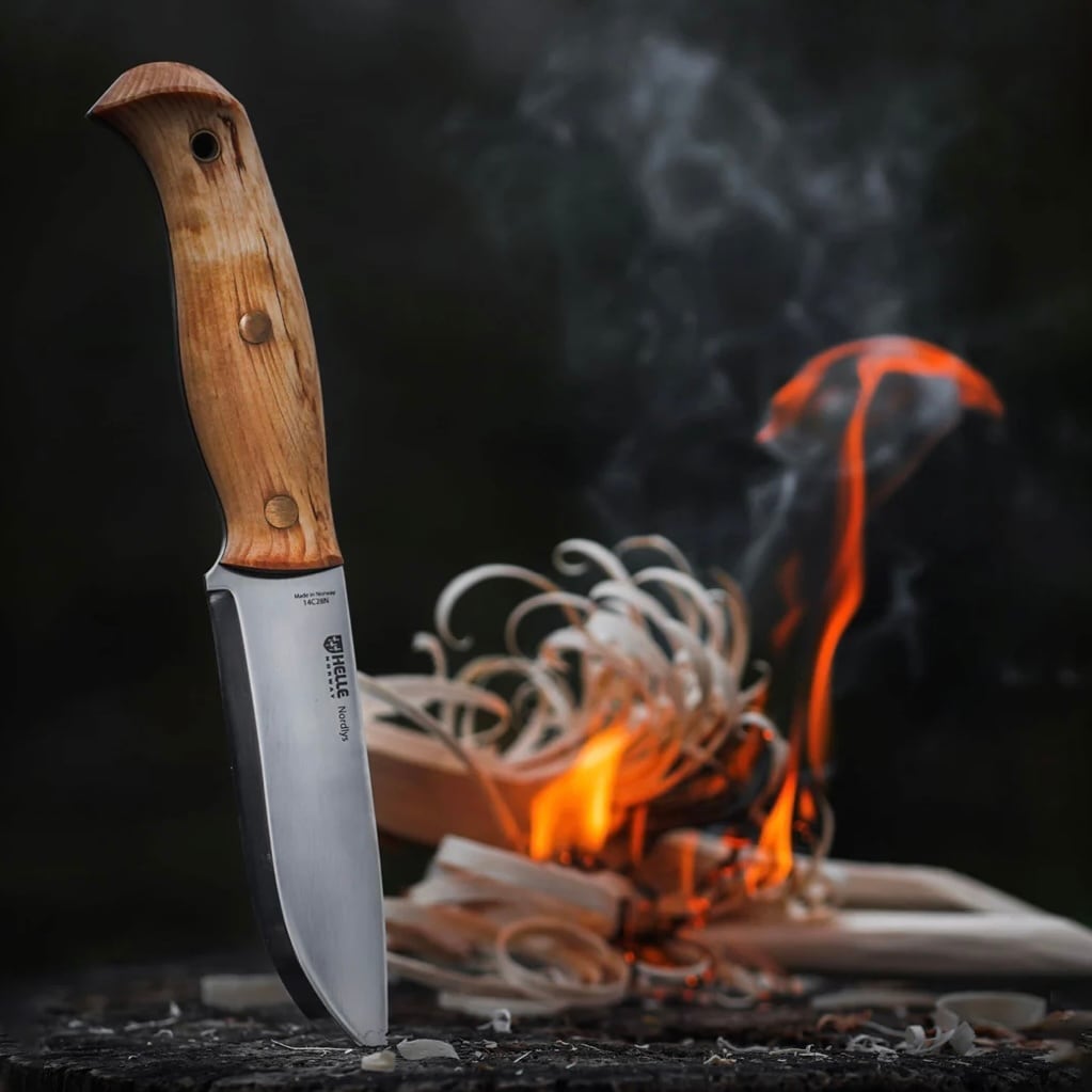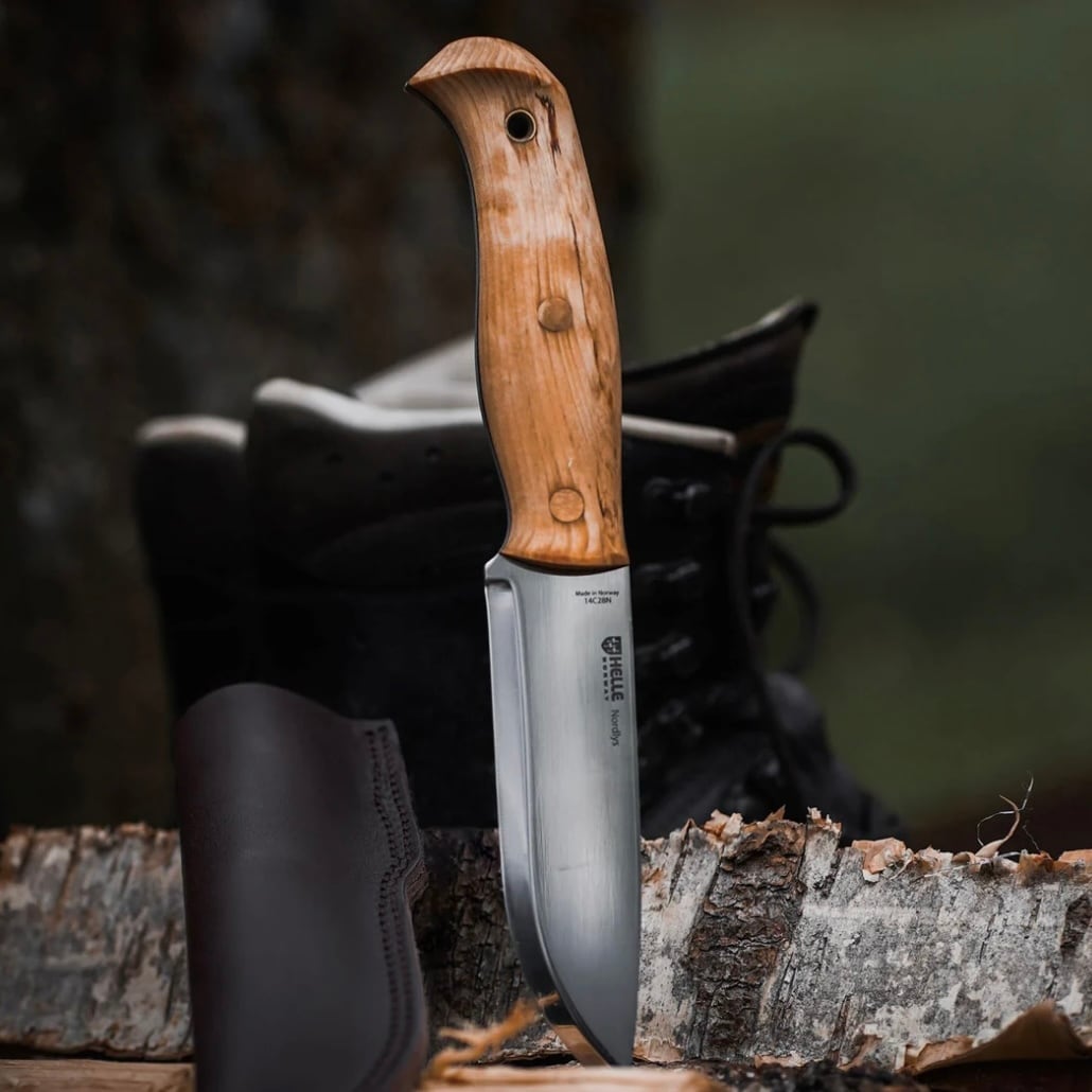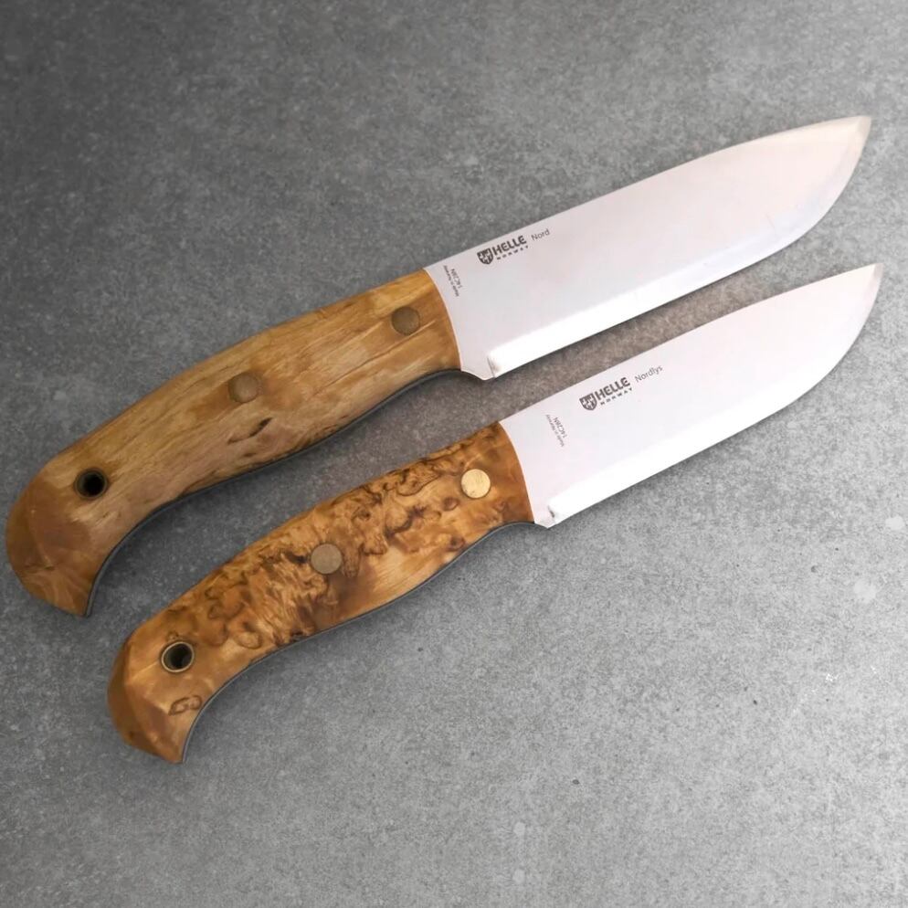 もともとスティックタングナイフを主流としていたヘレナイフにとって、欧米などでブッシュクラフトナイフとして重宝されるフルタングナイフを製作することは新たな挑戦でした。テマガミやワバキミ(セミフルタング)、世界的なヒットとなったディディガルガルシリーズを経て、ヘレが満を辞して世に放つ「ノルドリス」。ヘレナイフが今まで培ってきた伝統的なナイフ作りの技術と、現代アウトドアの革新的な要素を盛り込んだデザインは、ヘレナイフの看板を背負って立つ新たな定番モデルと言っても過言ではありません。