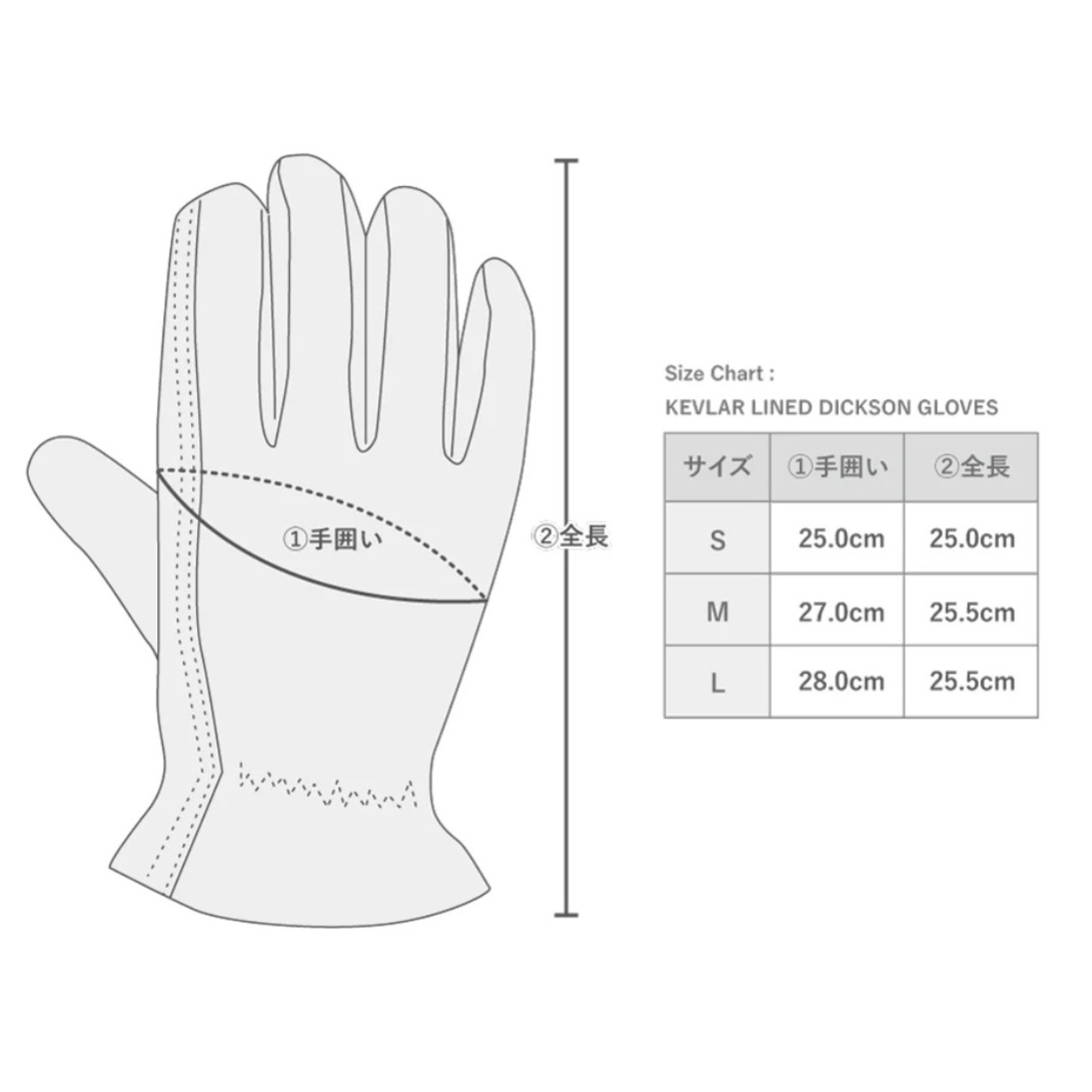 ・サイズ表はあくまでも目安サイズ(外寸表記)です。個人の手の形状によりフィット感が異なります
