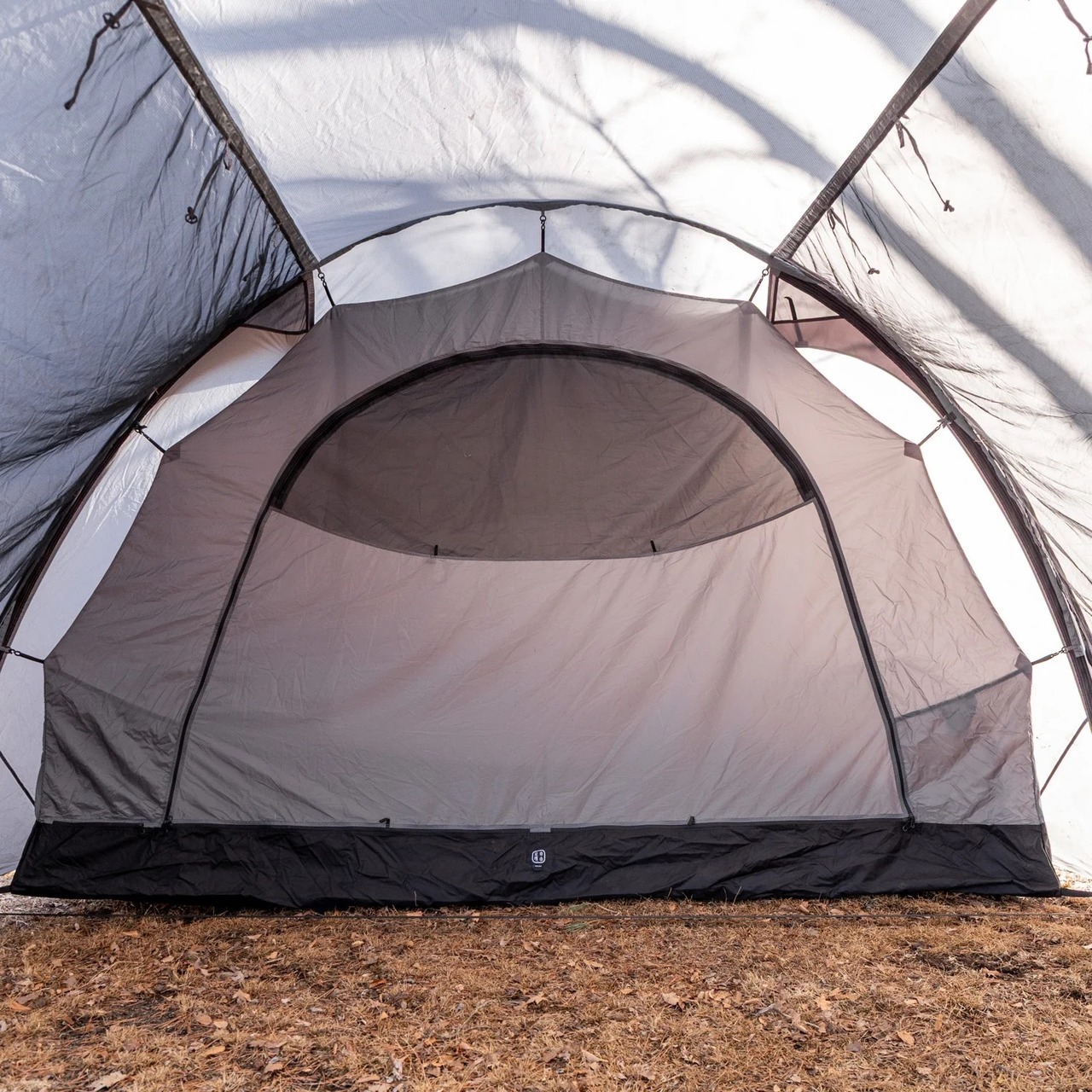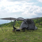 居住スペースと寝室を兼ね備えた2ルームタイプの多人数向けテント。
