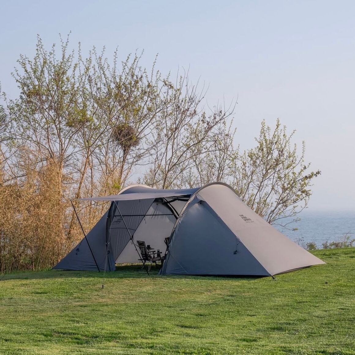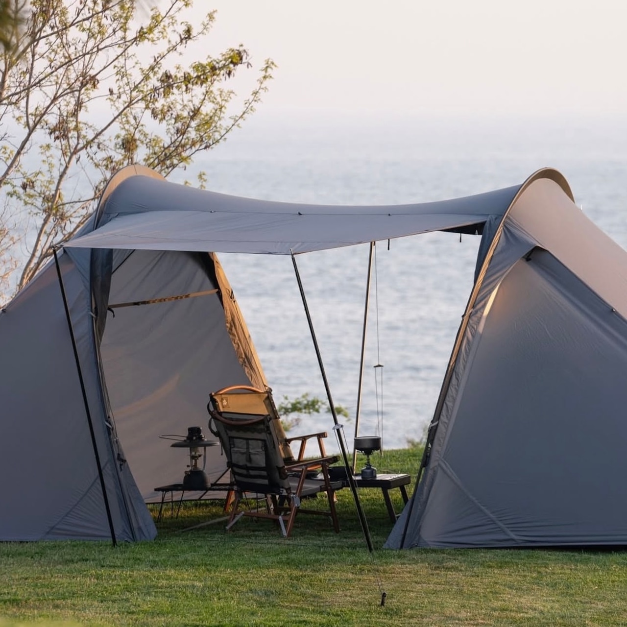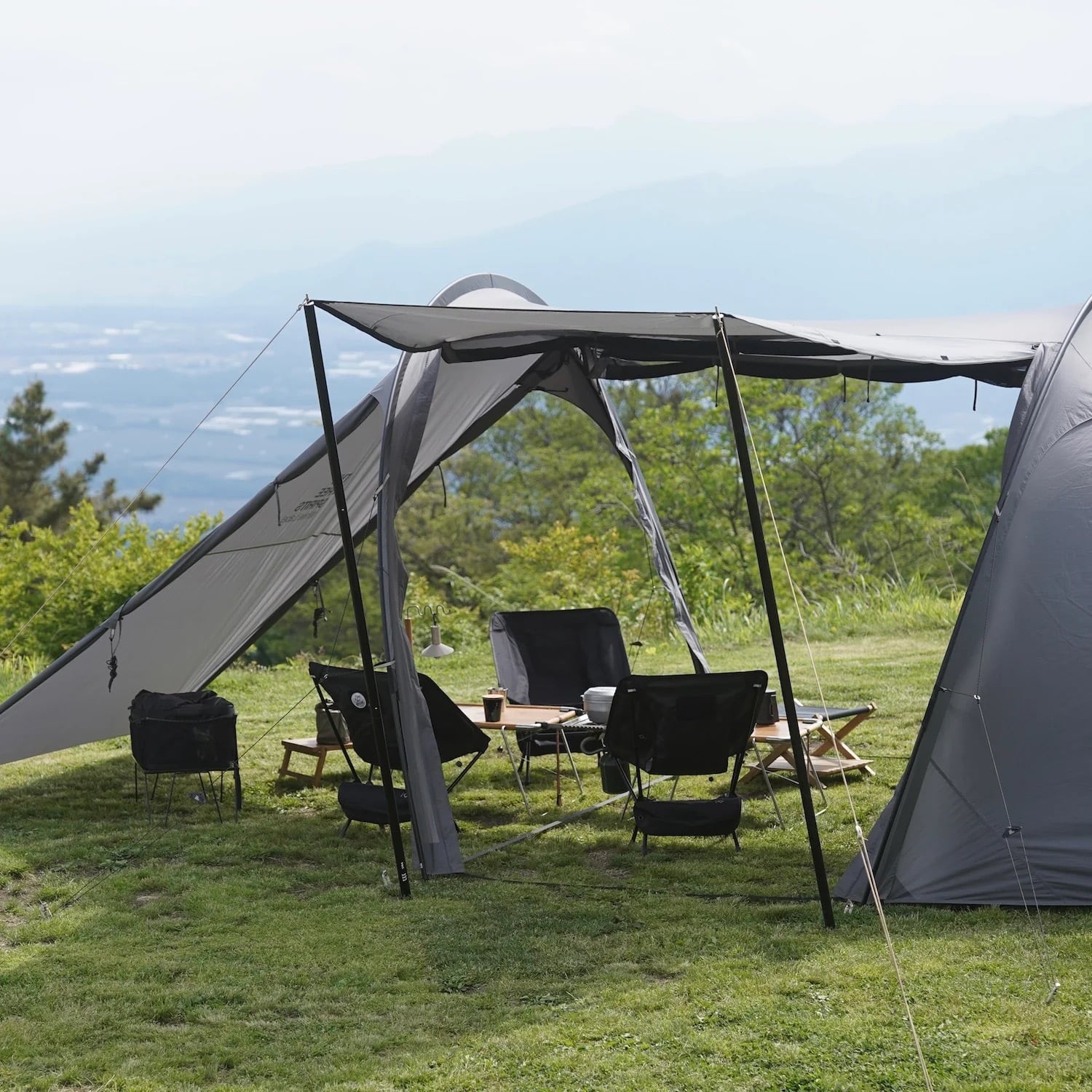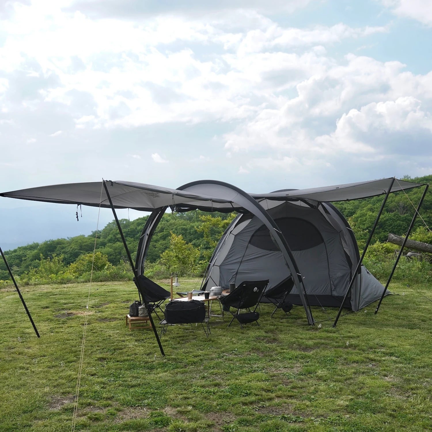 また、ドア以外にも撥ね上げられる箇所が複数あり、様々な設営アレンジを楽しめる多用途に活躍してくれる大型テントです。