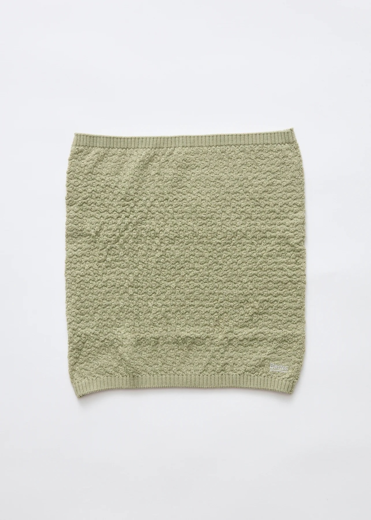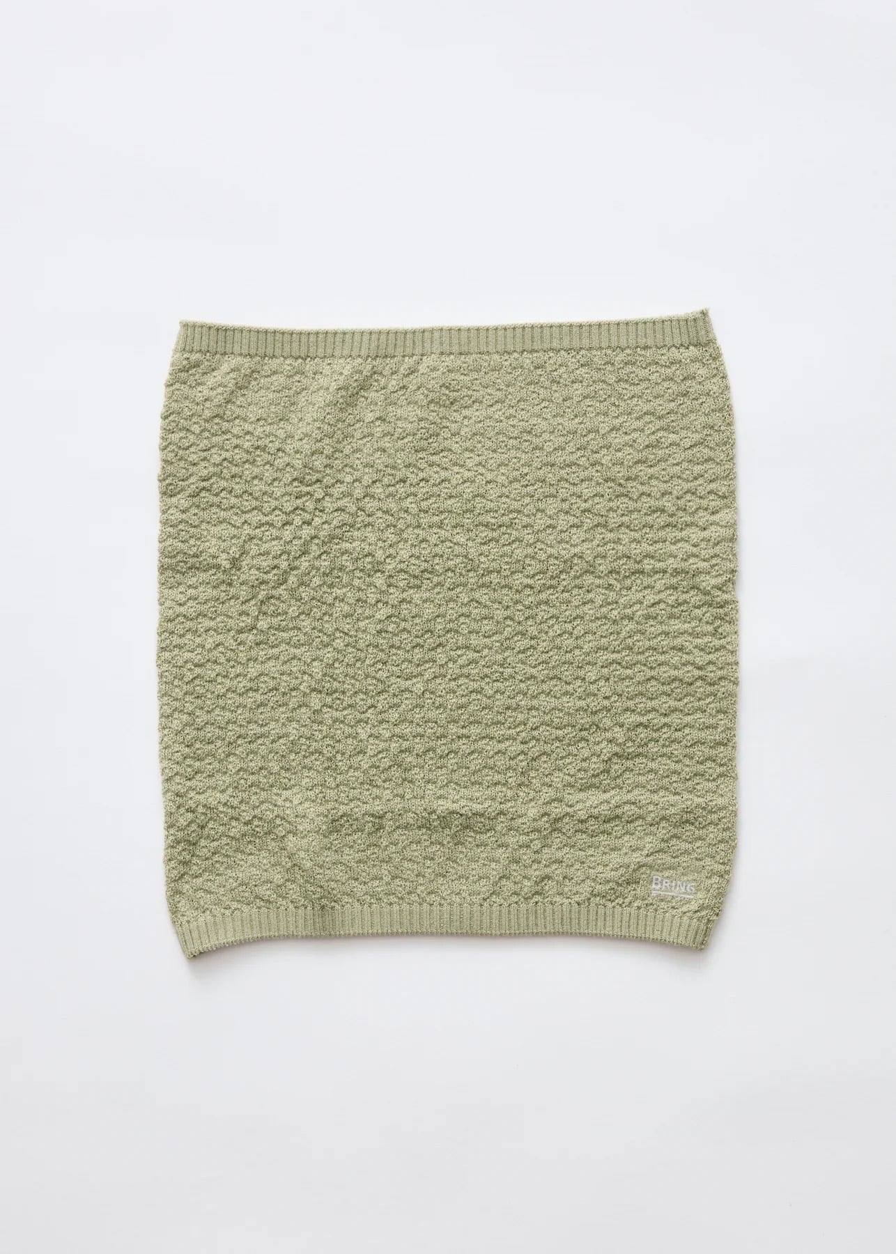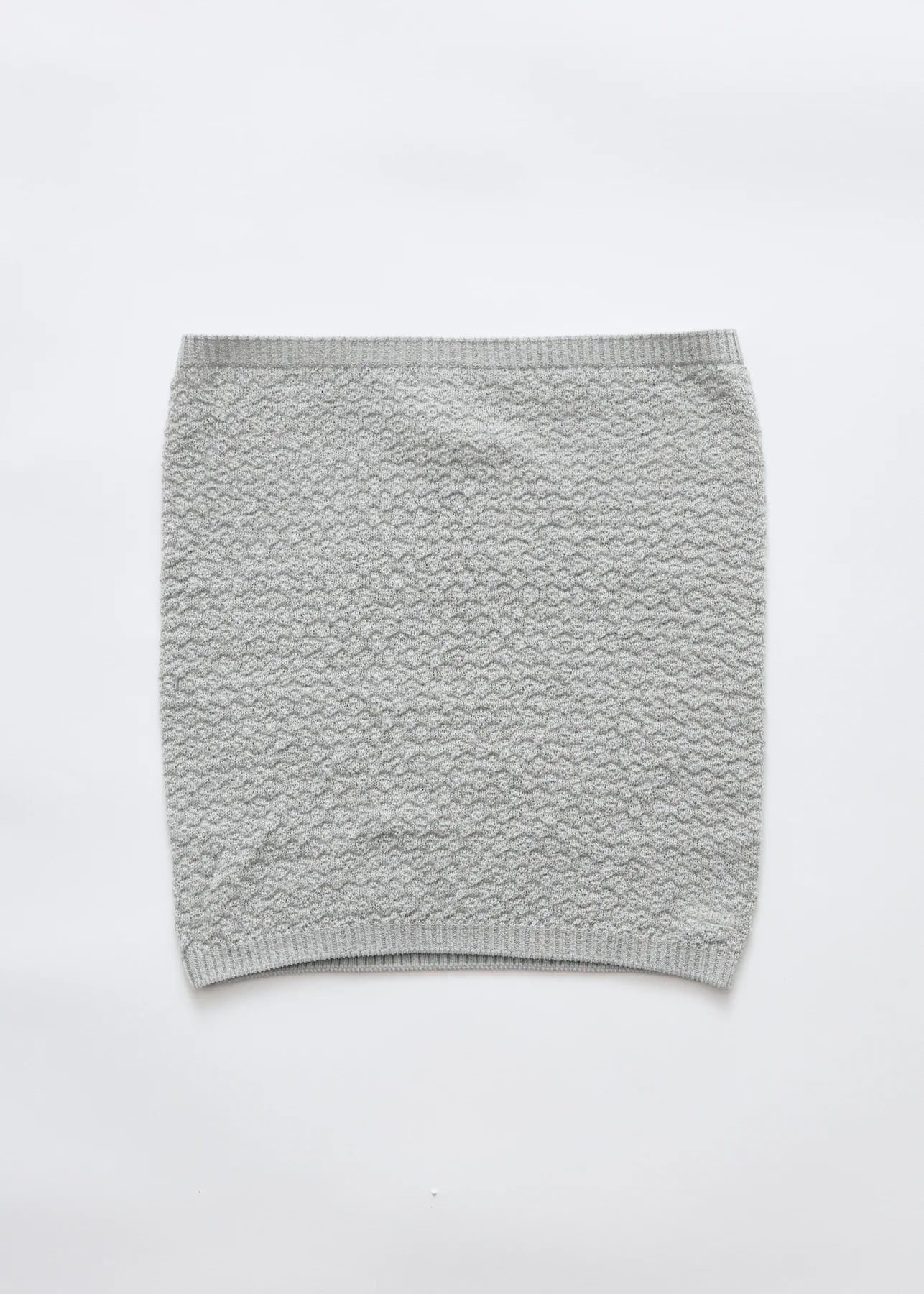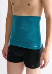 エクストラファインメリノウール70%、再生ポリエステル30%を使用した腹巻きです。