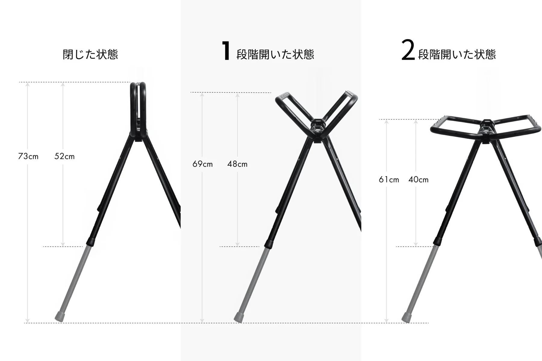 フレームを1段階開いた状態:W83 x D26 x H48cm/69cm