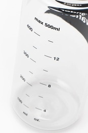 andwanderのロゴをプリントしたボトル。軽量ながら耐久性に優れたBPAフリーのクリアボトルです。口径が50mmと広口なので、氷や飲み物、行動食を入れるのに最適で洗浄も容易に行えます。容量500ml、対応温度-20℃から90℃
