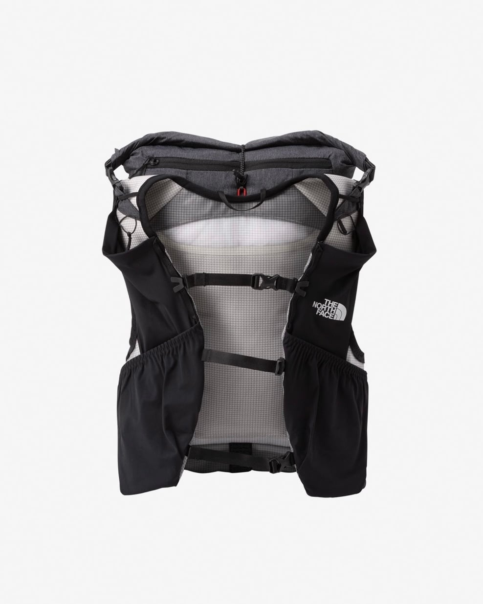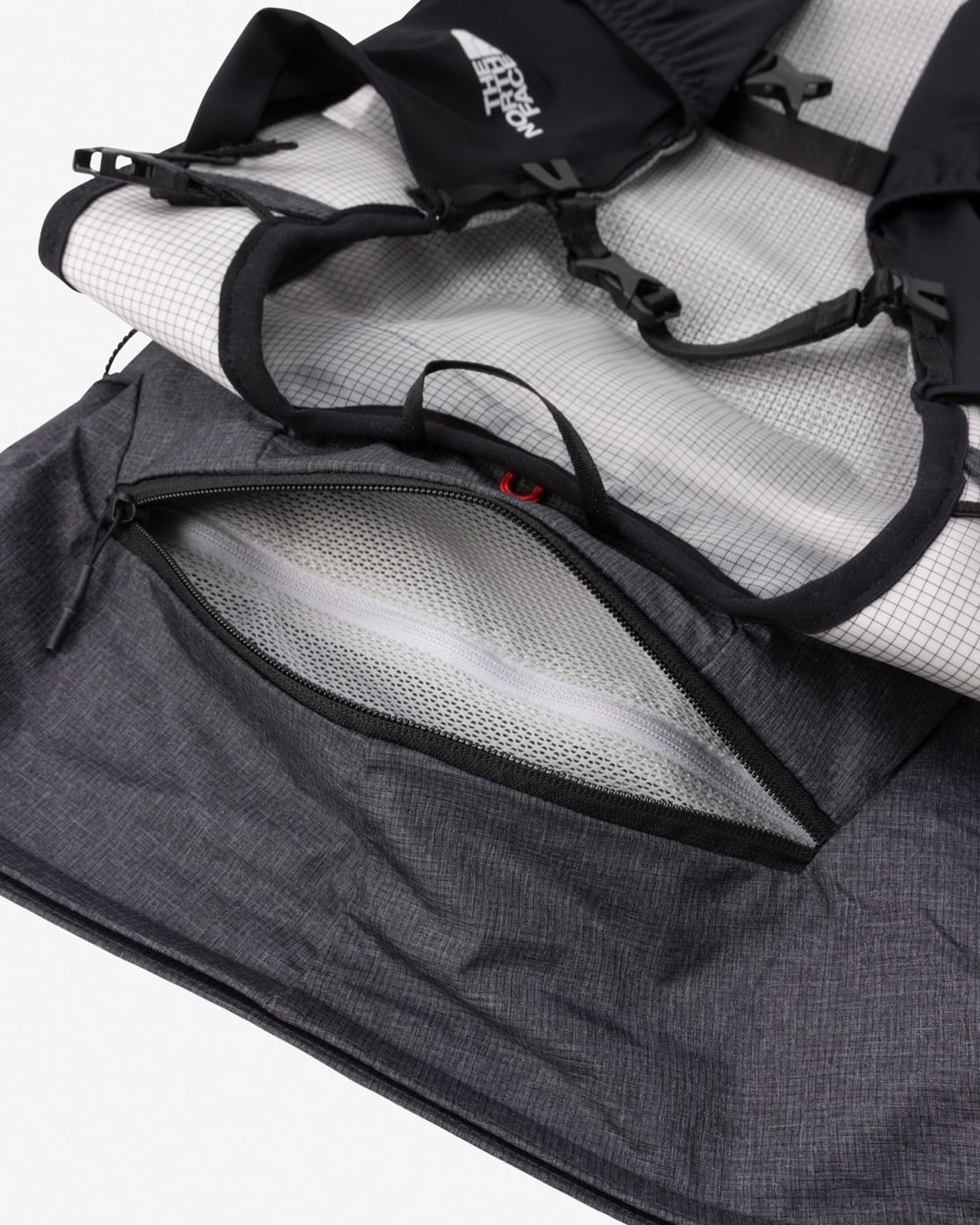 大きく開口するロールトップ式の本体は、荷物の量によって容量を調整でき、スムーズな収納が可能。本体内部へのアクセスファスナーを備え、ロールトップを開閉することなく収納することもできます。本体上部には走りながらでも収納可能な引手の長いファスナー付きポケットを装備。ショルダーハーネスにボトルポケットを、両サイド脇下にはストレッチスリットポケットを備えています。本体下部のストレッチポケットには左右どちらからでもアクセス可能な設計。夜間をまたぐレースシーンを中心に、日帰りの登山まで活用できる汎用性と機能を結集しています。
