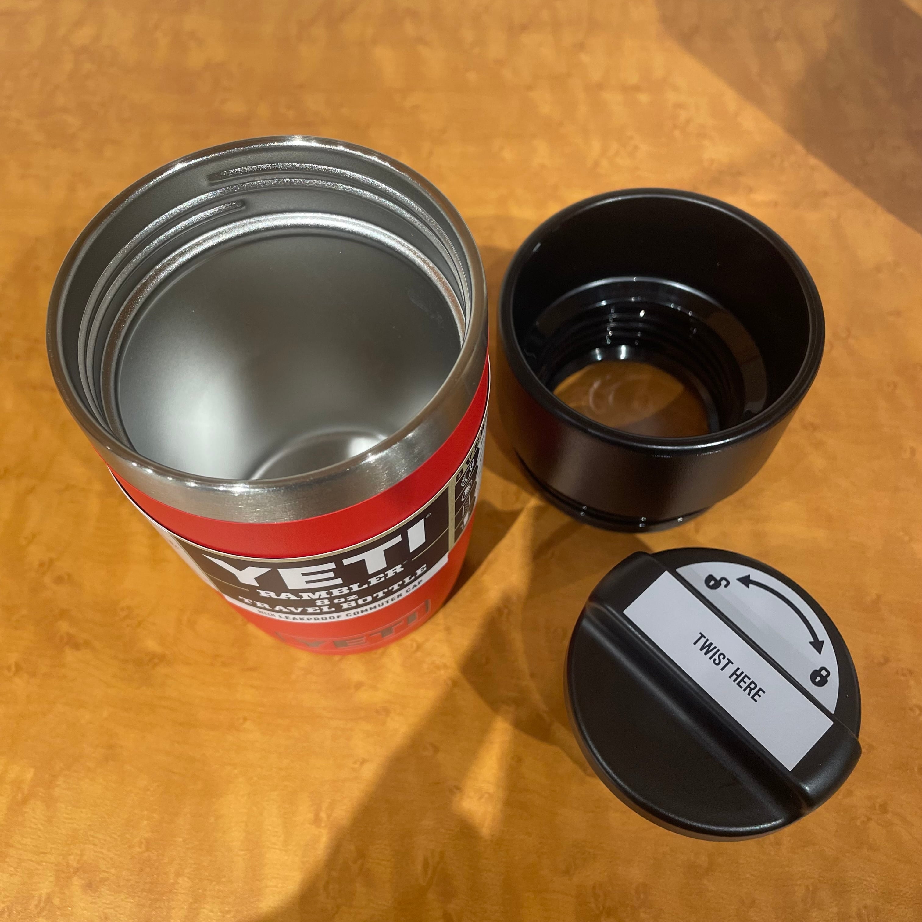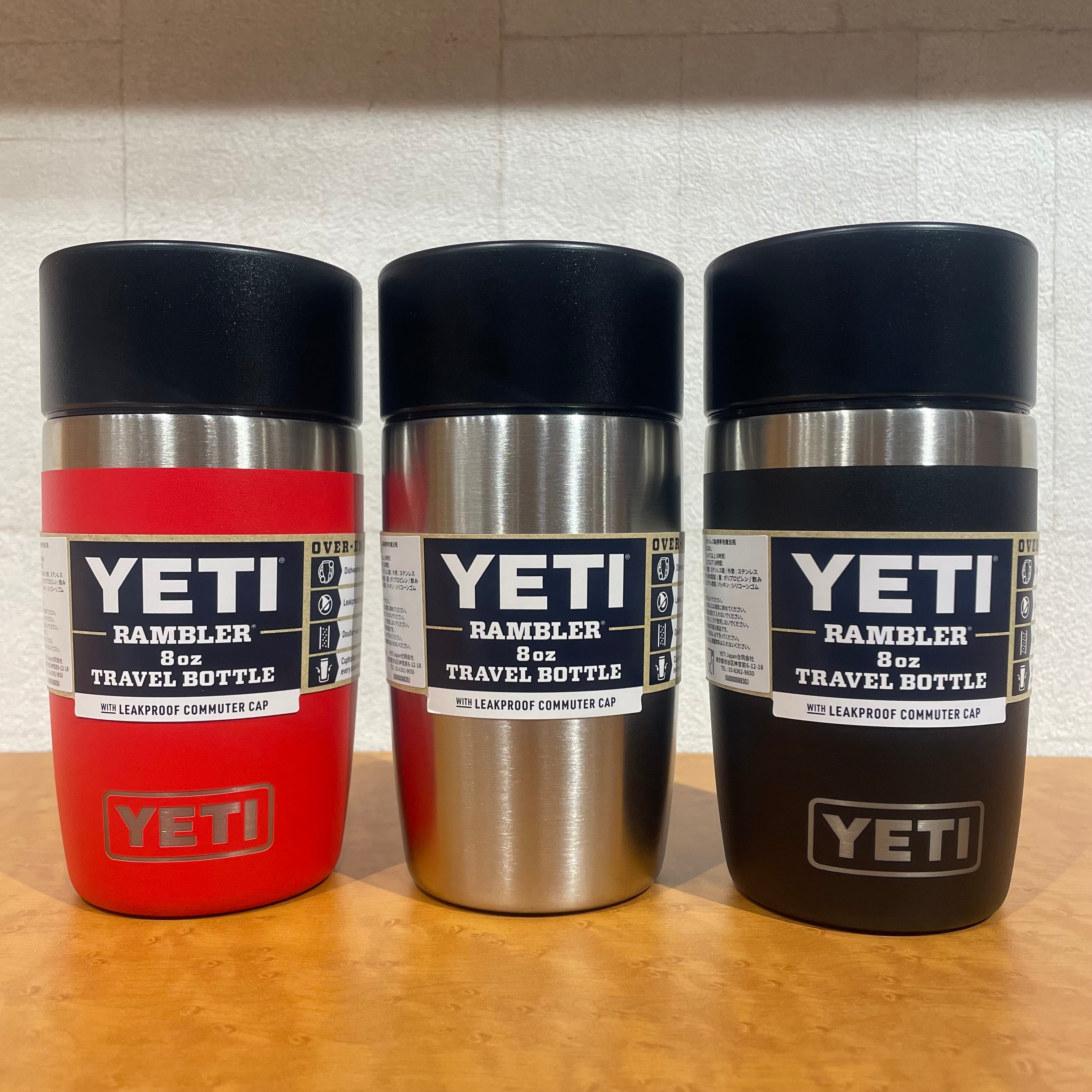 YETI イエティ ランブラー8oz トラベルボトル は一杯分のコーヒーを温かいまま持ち運ぶのに最適なウォーターボトルです。