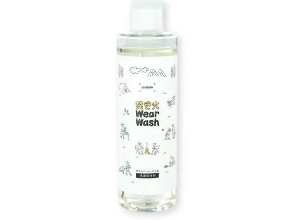 「焚き火ウェアウォッシュ」は日本で初めて焚き火の消臭効果が認められた衣料用洗剤です。焚き火の匂いの主たる成分を特定し、消臭する成分を独自に配合して一般的な衣料用洗剤よりも焚き火の匂いに対して消臭効果が優れていると第三者機関に認められました。