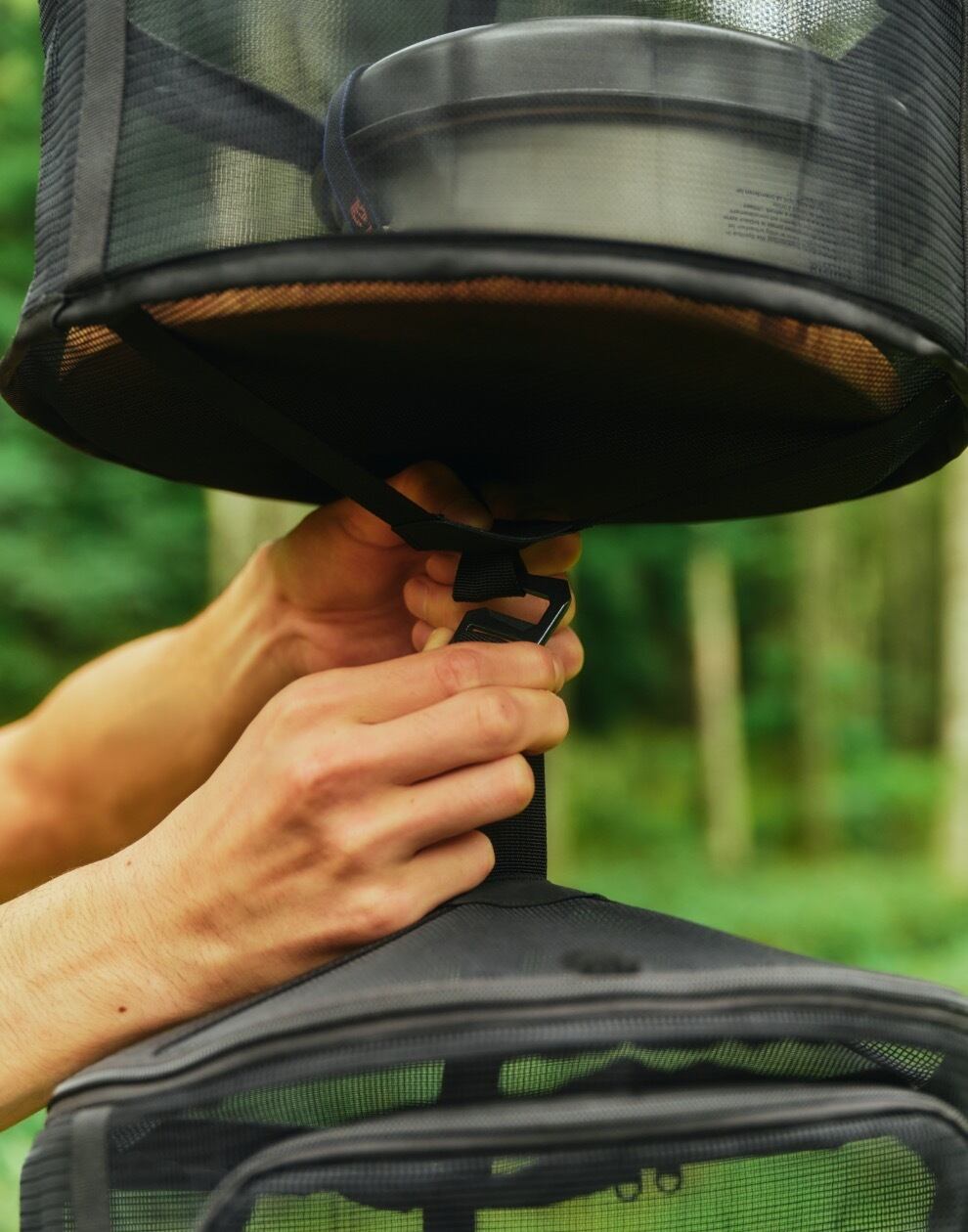 簡単に取り外せるメッシュ生地のドライケースが付属し、乾かしたいものを中に入れて吊せば、効率よく食器類を乾かすことができます。