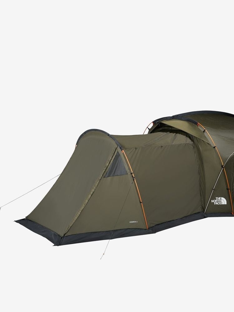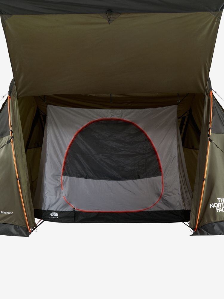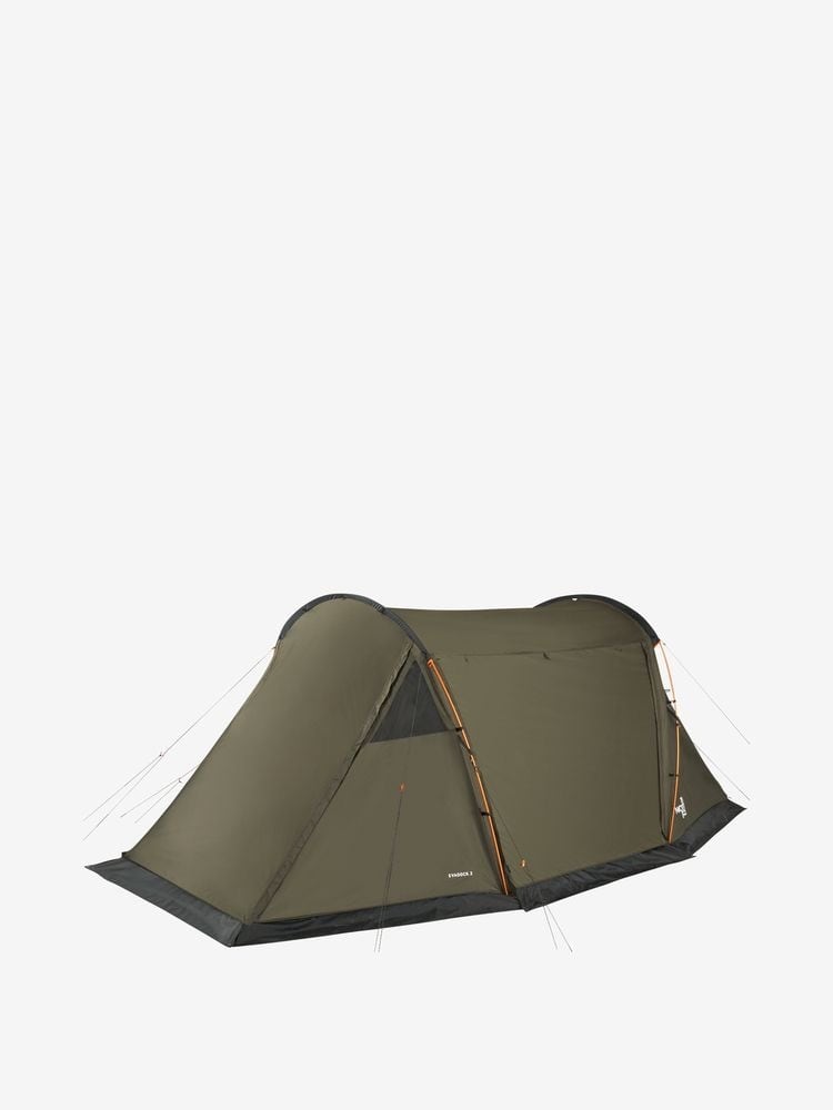 テント内部は大人2名が同時に就寝できるサイズ。アウトフレーム構造で、4シーズンに対応するスノースカート付き。フライシートのみでシェルターとしても使用することができます。フライシートには、リサイクルポリエステルを使用。付属インナーは吊り下げ式で、天候に左右されることなく容易な設営と撤収が可能。前後左右に出入口があるため、キャンプサイトや景色に合わせてお好みのスタイルでキャンプを楽しめます。