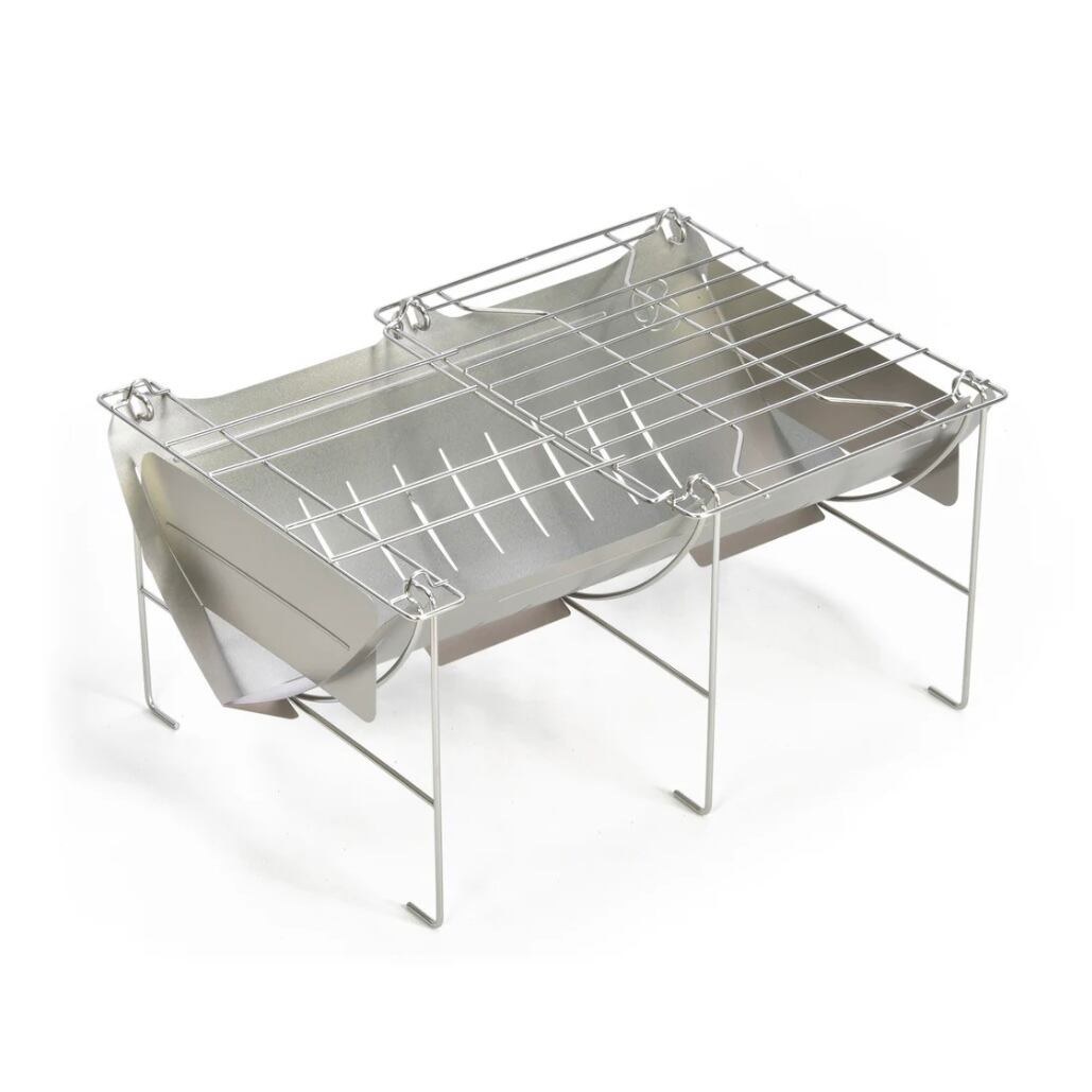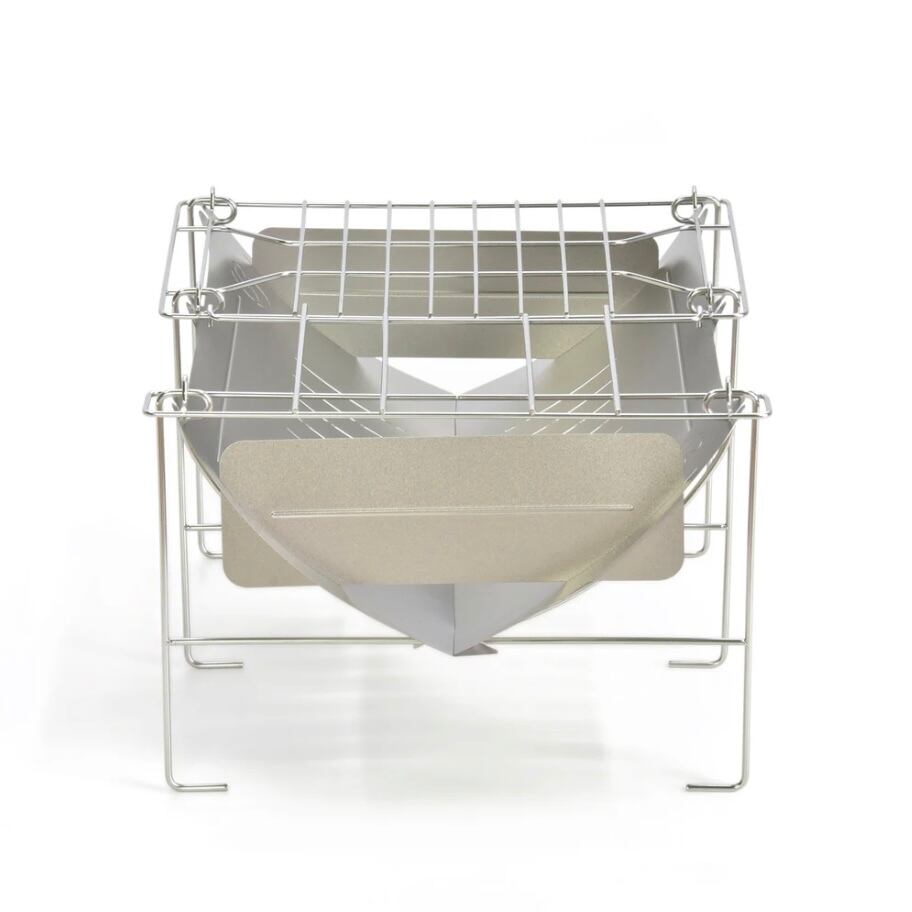 燃焼効率も良く、焼き網付きで、料理もしやすいチタンの焚き火台。