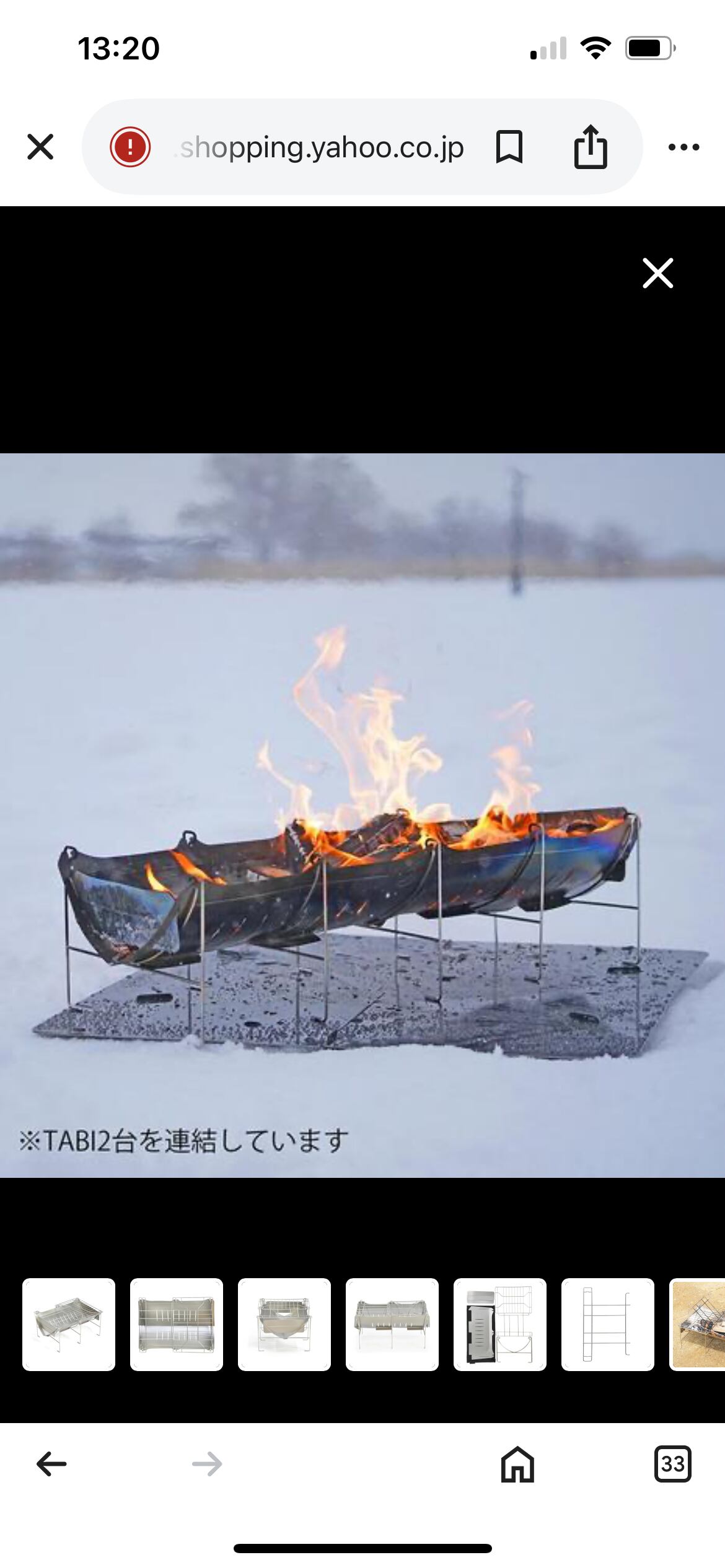 軽量コンパクトながら側板を外せば大きな薪も使える焚き火台TABI(タビ)。