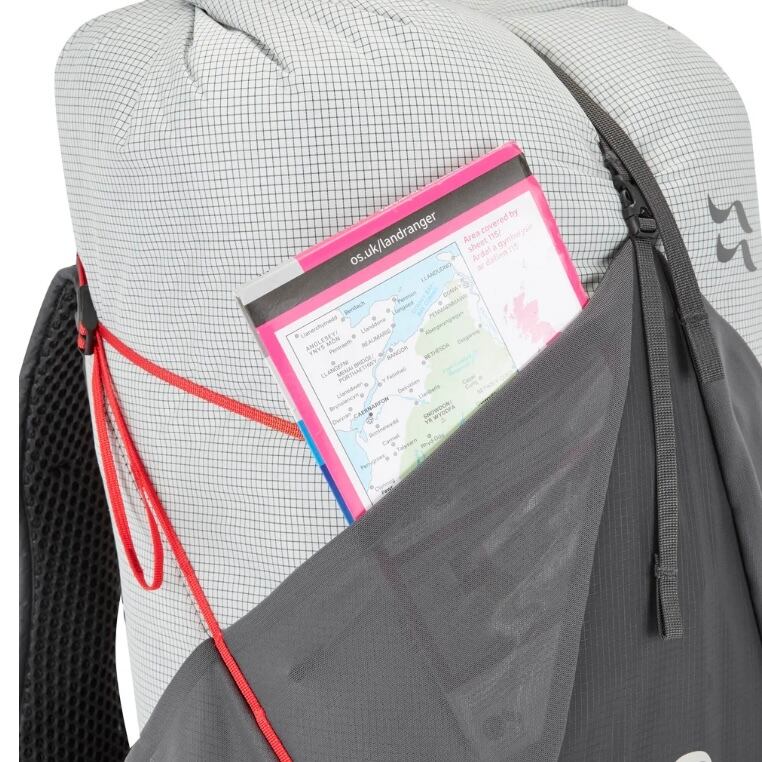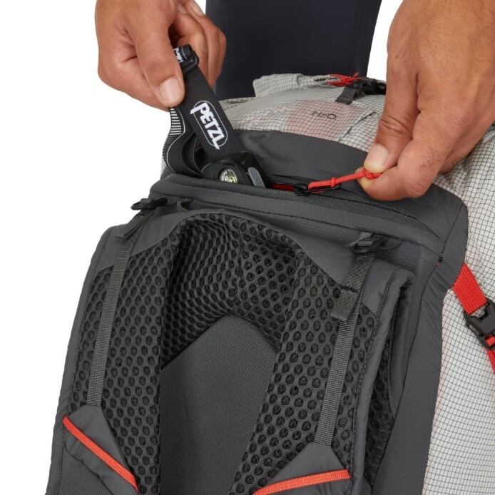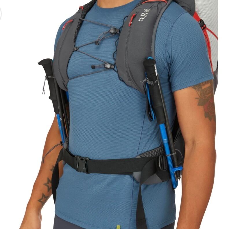 SS24 フロントの下部コンプレッションウェビングループはステッチされていません。バンジーポールホルダーがヒップベルトから移動し、アクセスしやすくなりました。