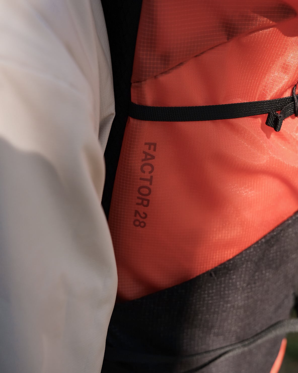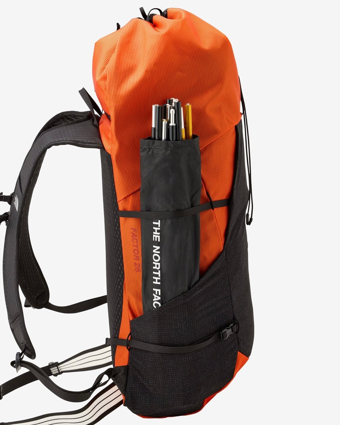 保水しにくいモノフィラメントファブリックを本体に採用/サイドコンプレッション同士をつなげることでフロントに外付けが可能/ロールトップとしても活用可能なドローコード式クロージャー/フロントポケットとサイドポケットに耐久性の高いSpectraストレッチナイロンを採用/素早い着脱が可能なマグネット式チェストストラップ/通気性の高いテープを使用したウエストベルトは取り外しも可能/背面上部にファスナーポケット