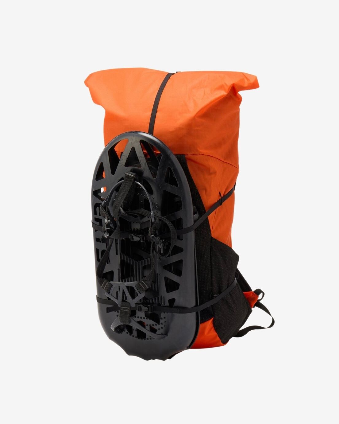 ・サイドコンプレッションベルト同士をつなげることで、フロントにシェルや軽量なスノーシューを外付け可能な仕様