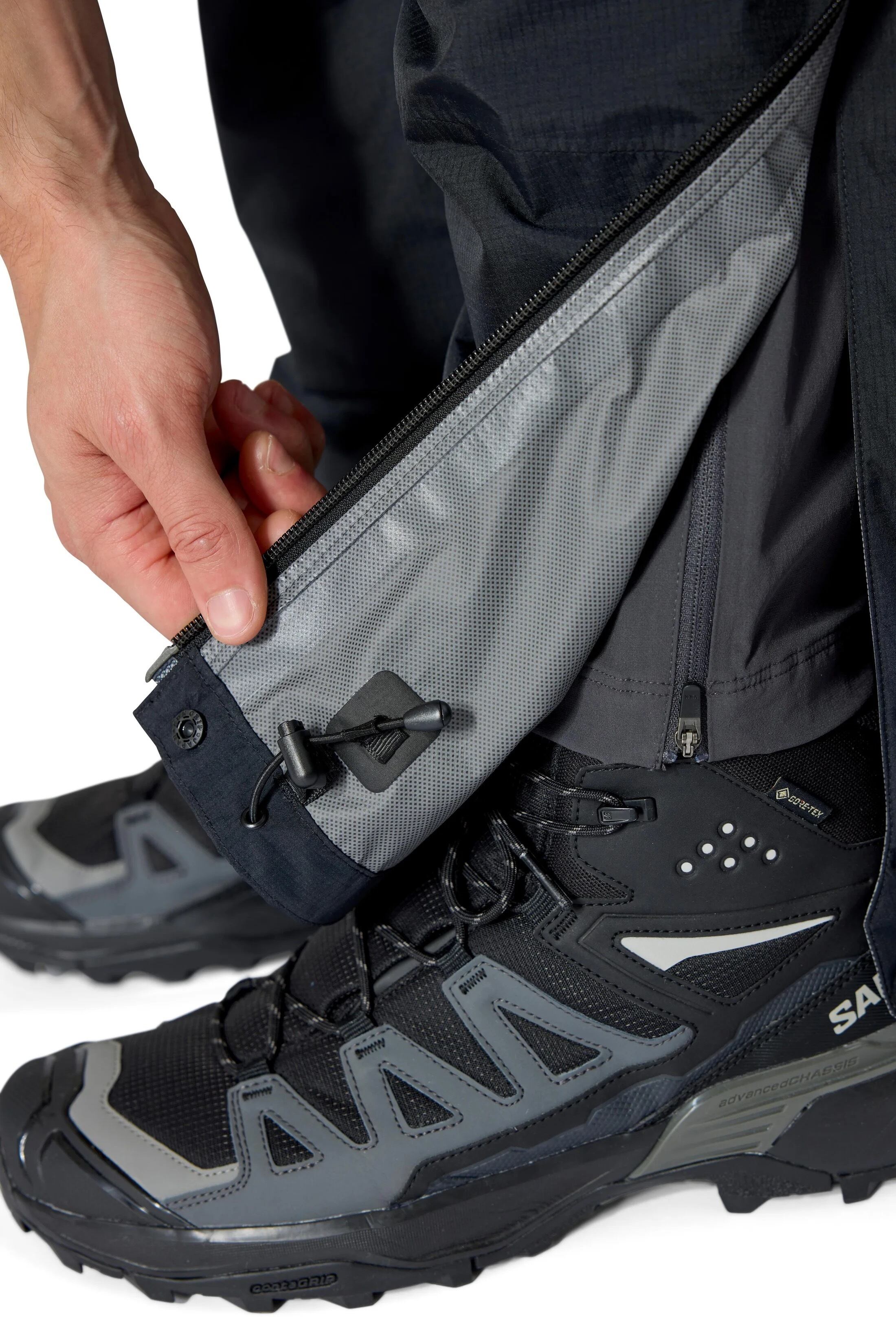フルレングスのジッパーでブーツの上からでも簡単に着脱できます。