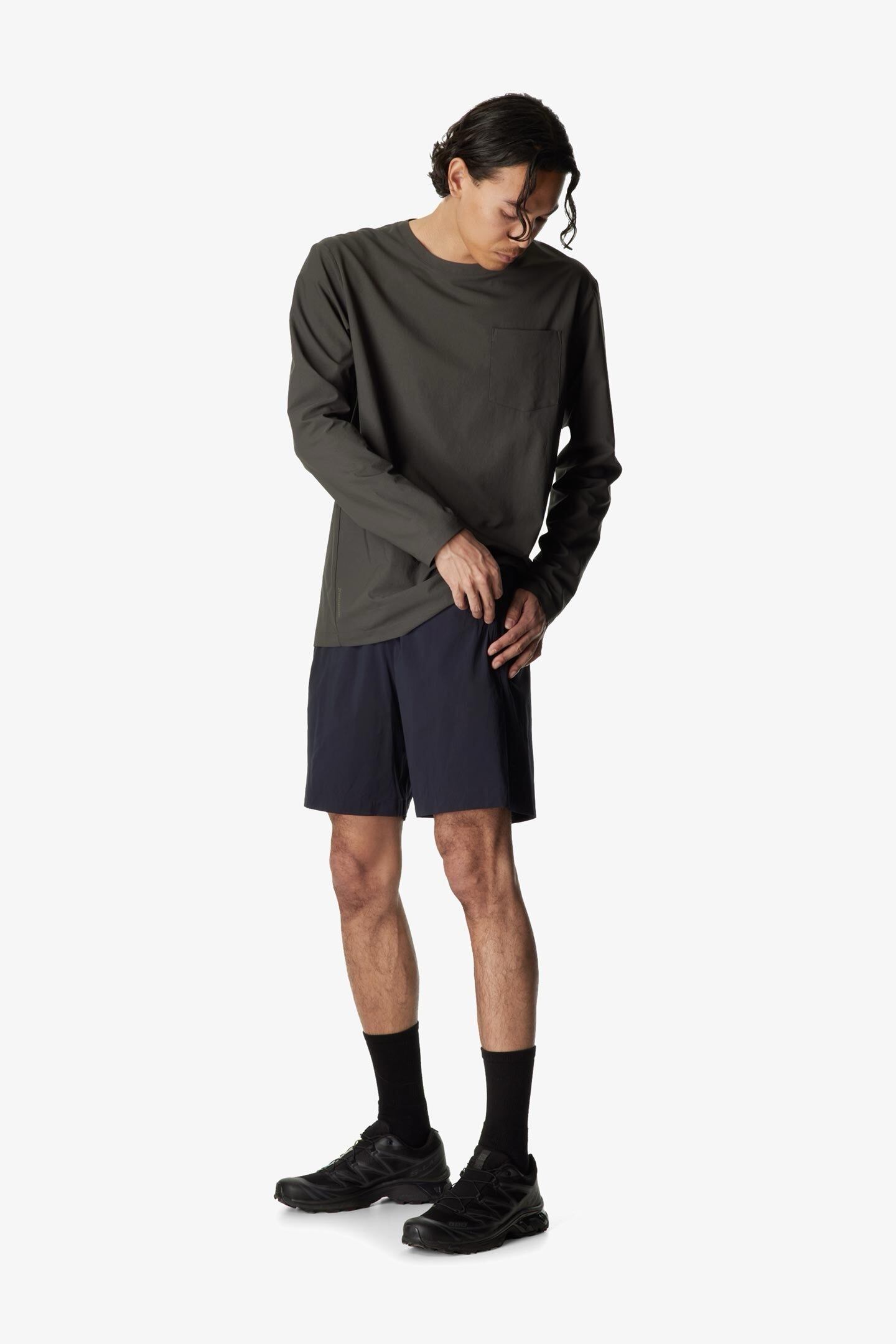耐久性と快適性の融合、それがLiquid Shortsです。生地には、長年にわたり実績のある、Houdini定番のLiquid Rockを使用。93%リサイクルポリアミド、7%エラスタンの混紡により、軽さを損なうことなく高い耐久性を実現しています。肌に触れるとドライで柔らかな質感が心地よく、暑さや湿度の高いコンディションでも快適。リラックスフィットに加え、コード付きのウエストゴムでフィット感を調整できます。両サイドには、貴重品を安全に収納できる隠しジッパーポケットを配置しています。