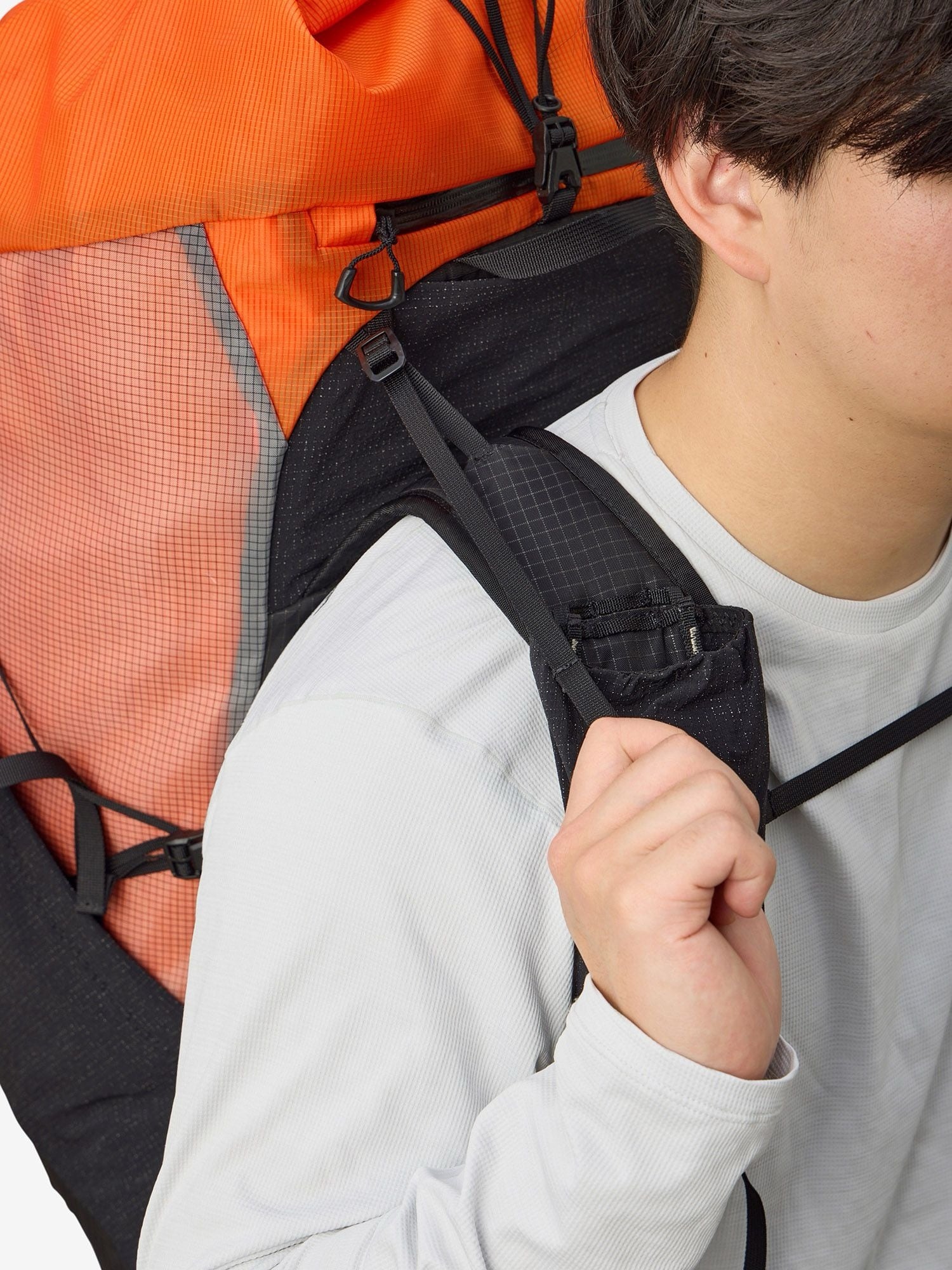 通気性が良く、保水しにくいモノメッシュを本体に採用/メイン気室内には防水仕様のパックライナー付き/背面とウエストのモノメッシュにDEORANGE加工/サイドとトップの2通りの固定が可能なロールトップ式クロージャー/サイドポケットに耐久性の高いSpectraストレッチナイロンを採用/安定感を高める2本のマグネット式チェストストラップ/取り外し可能なボトルポケット/上下に位置調節可能で取り外しもできるウエストハーネス/左右のウエストハーネスにはポケットを配置/背面上部にファスナーポケット/フロントにコンプレッションバンジーコード