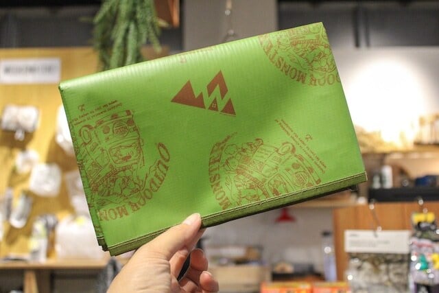 大人気のOUTDOOR MONSTERがWOODSのためだけに描きおろしたオリジナルイラストと、WOODSロゴがプリントされているスペシャルコラボなレジャーシートです