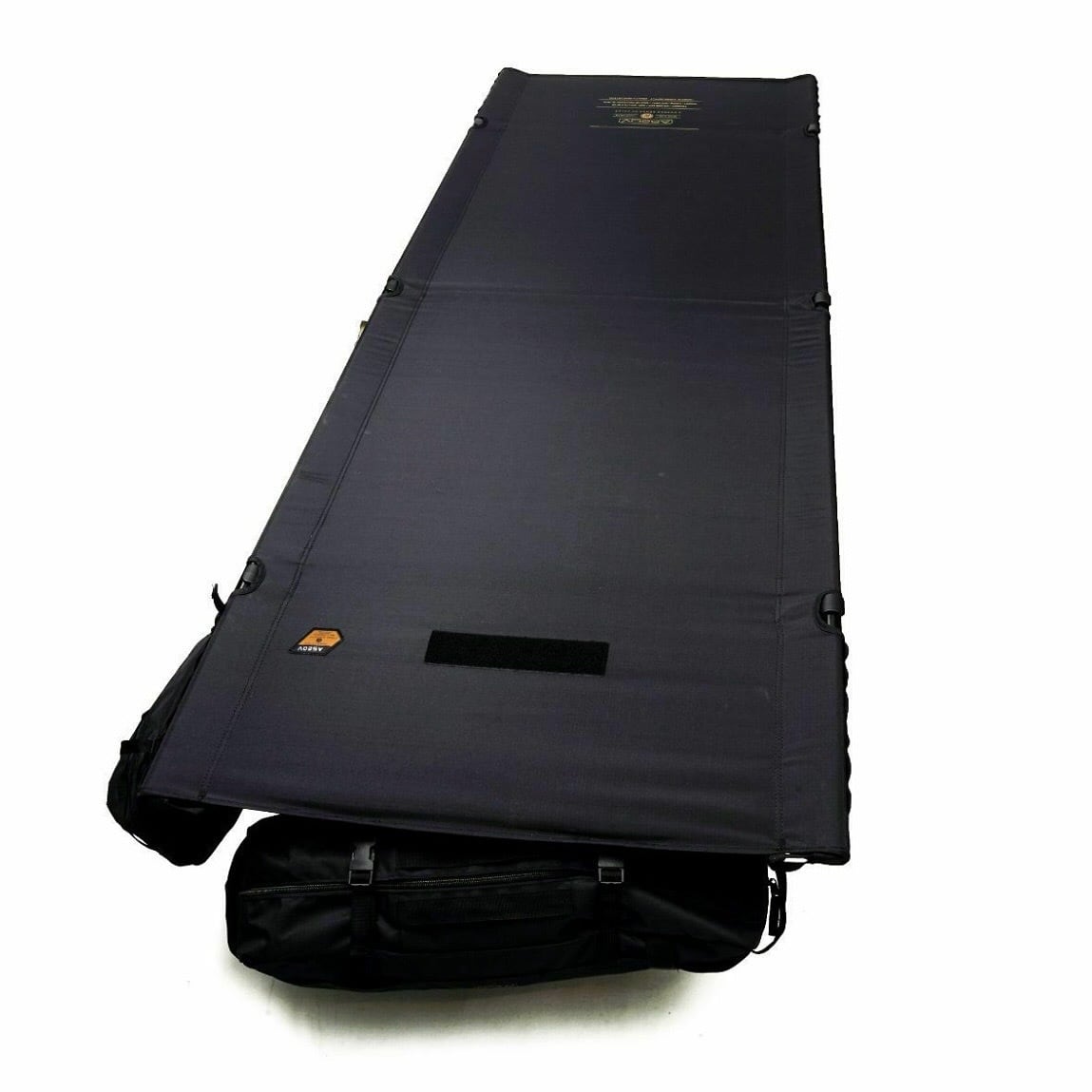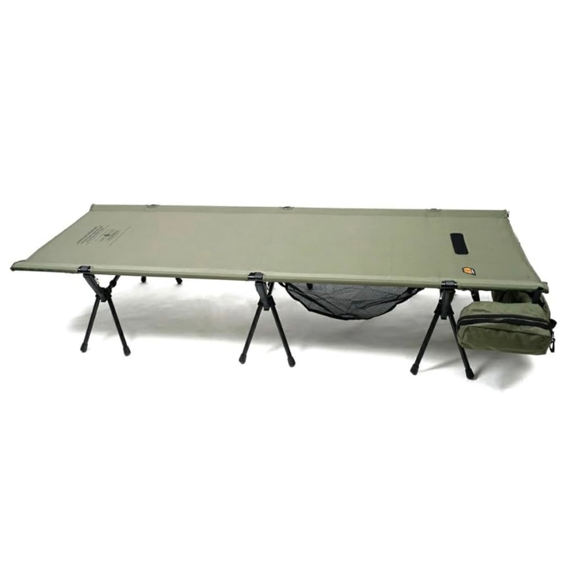 本体素材は600Dナイロンリップストップを使用。サイズは幅700mm、長さ2,000mmと大きめなサイズになります。アウターケースやポールケースがそのままコットに取り付けてポケットとして使用できる、万能コットを考えました。