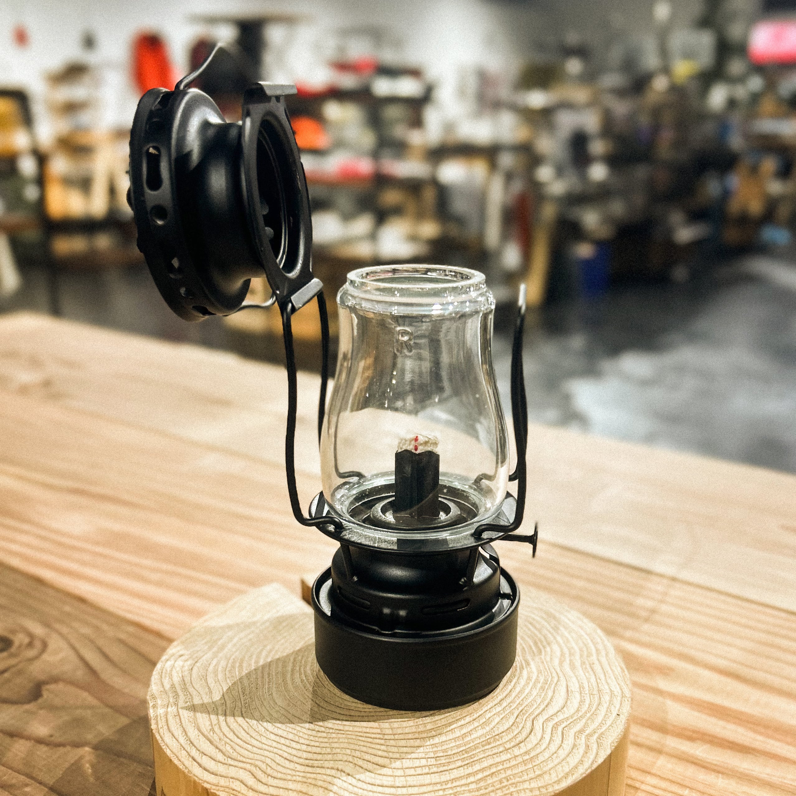 ホヤガラスと傘の部分に刻印が入ったROTHCOのタクティカルランタン。シンプルな構造で扱いやすい非加圧式のオイルランタンです。落ち着いた灯りが特徴で、夜のキャンプの雰囲気をより魅力的にしてくれます。
